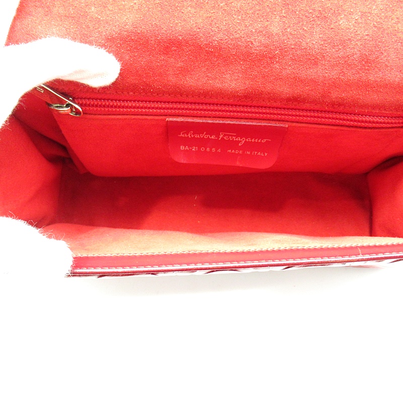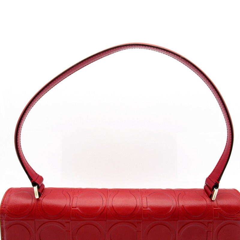 USED品。フェラガモのハンドバッグです。ガンチーニのロゴや全体的なフォルムが大人な雰囲気のバッグです。