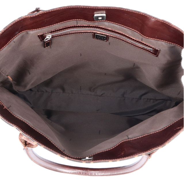 USED品。大きめで収納力抜群。デザイン性もよくオススメの一品です。フェンディの定番ズッカ柄を使用することによってブランドアピールもバッチリです。