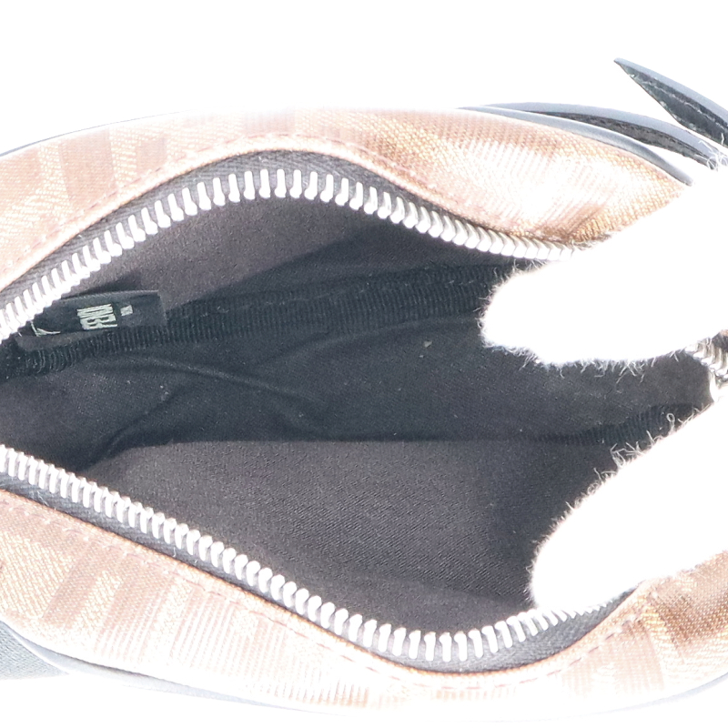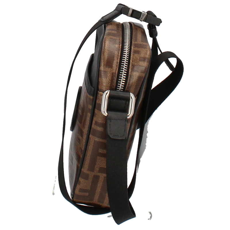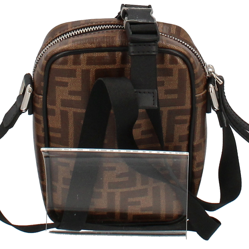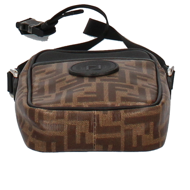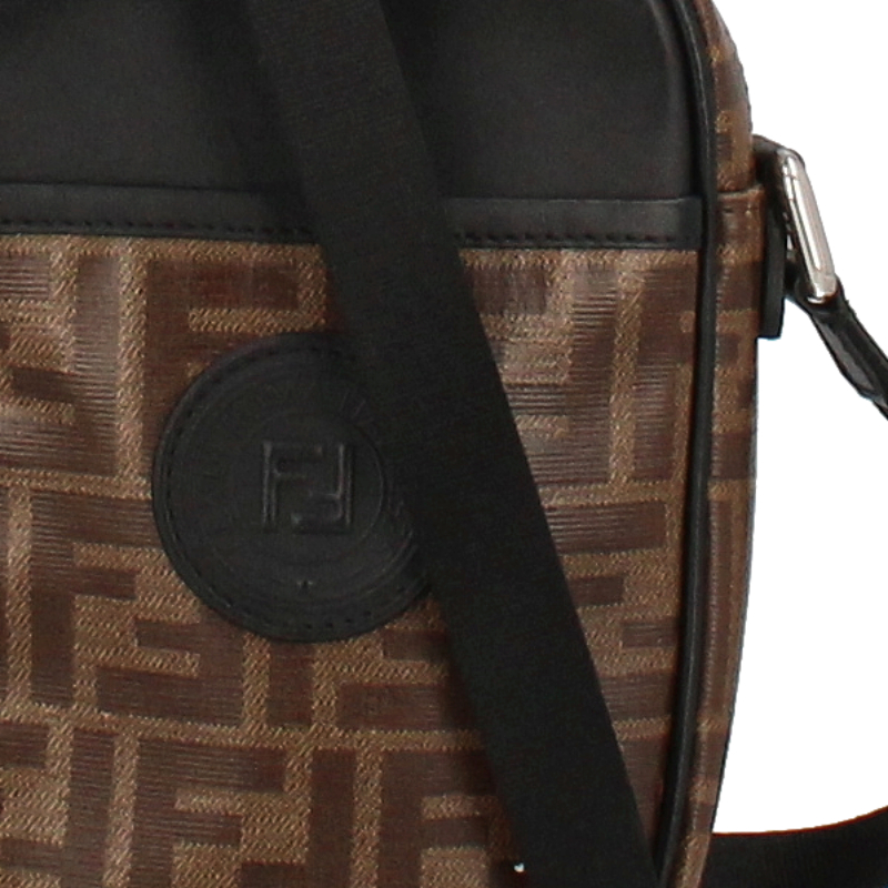 USED品。ブラウンのFFモノグラムのモチーフをあしらったデザイン。ちょっとしたお出かけに便利なショルダーバッグです。