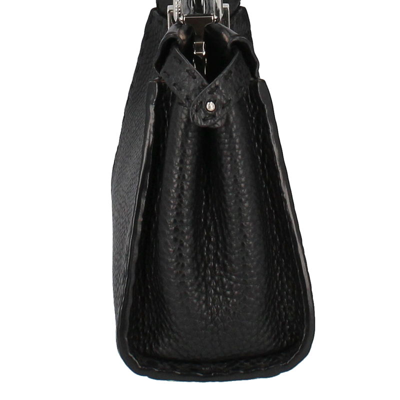 USED品。ひときわラグジュアリーな存在感を放つ「ピーカブー」シリーズ。端正なフォルムと遊び心のあるデザインがとても魅力的です。取り外し可能なストラップ付き。