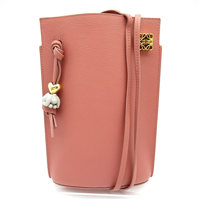 USED品。ショルダーストラップとアナグラムダイスが付いたクラシックなカーフスキンの実用的なポーチ。