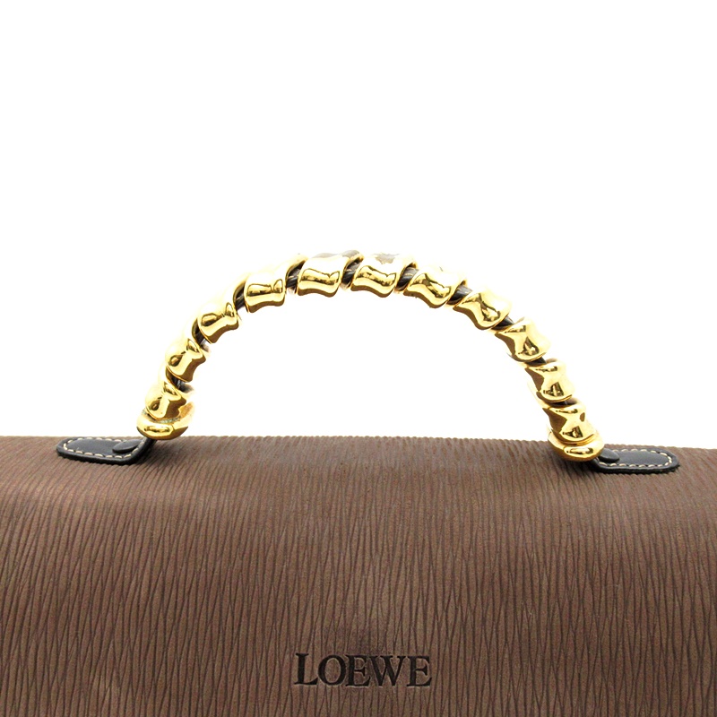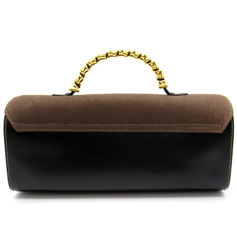 USED品。人気の高い“ベラスケス”シリーズのハンドバッグです。コンビレザーとツイストモチーフの金具がついた高級感漂うデザインでハンドバッグとしてもご使用いただけます。