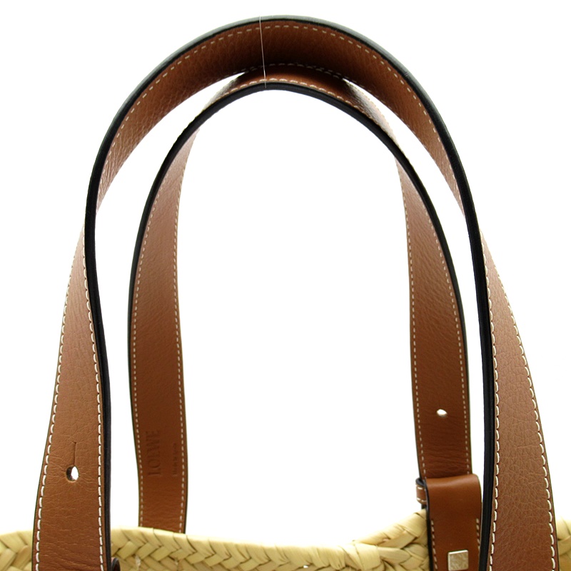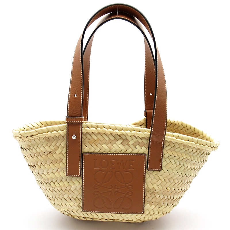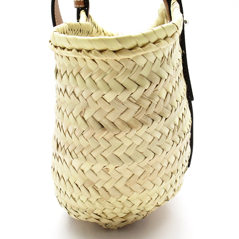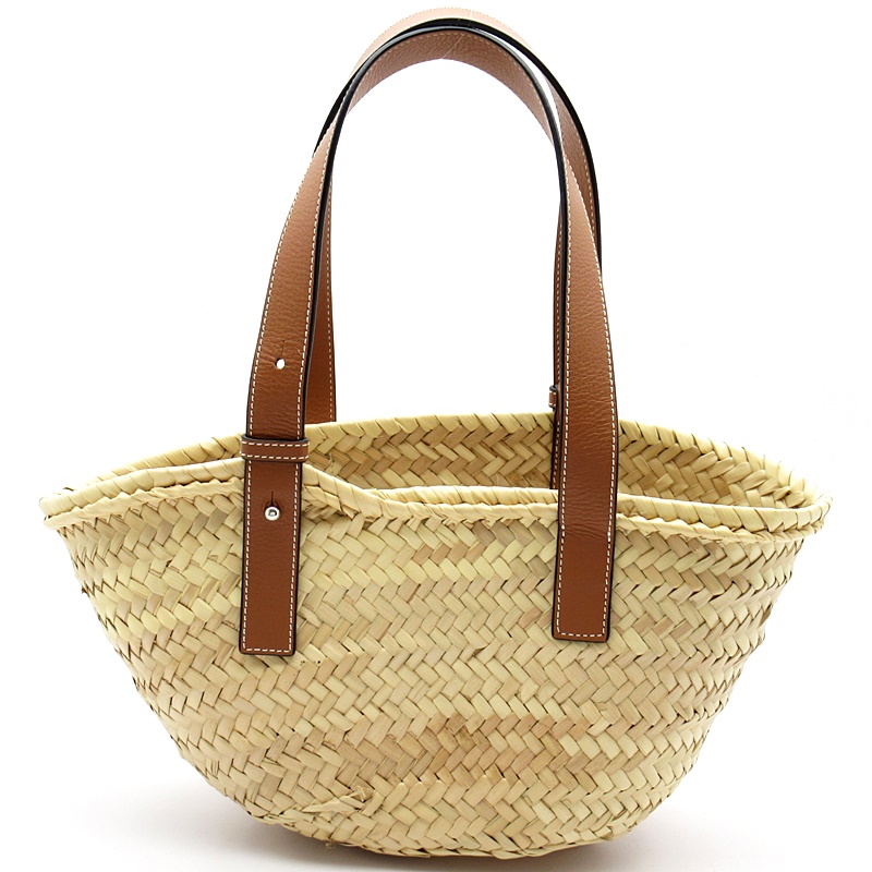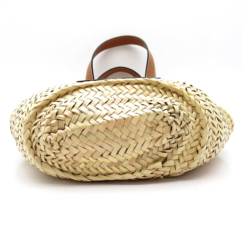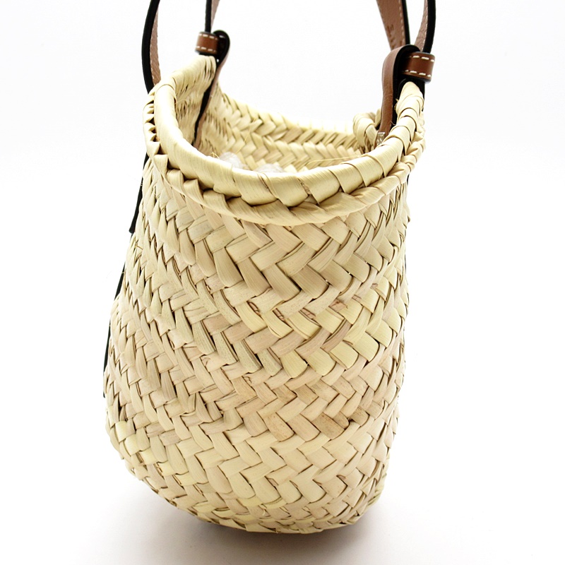 USED品。夏の定番として完璧なバスケットハンドバッグ。 ロエベのスペインのルーツを彷彿とさせるこの手編みのバスケットはヤシの葉で作り上げられており、高級なクラシックカーフスキンとの組み合わせでリゾートや日常使いまで幅広く活躍してくれます。