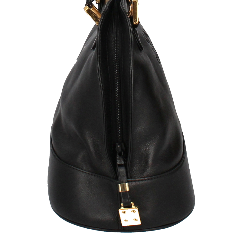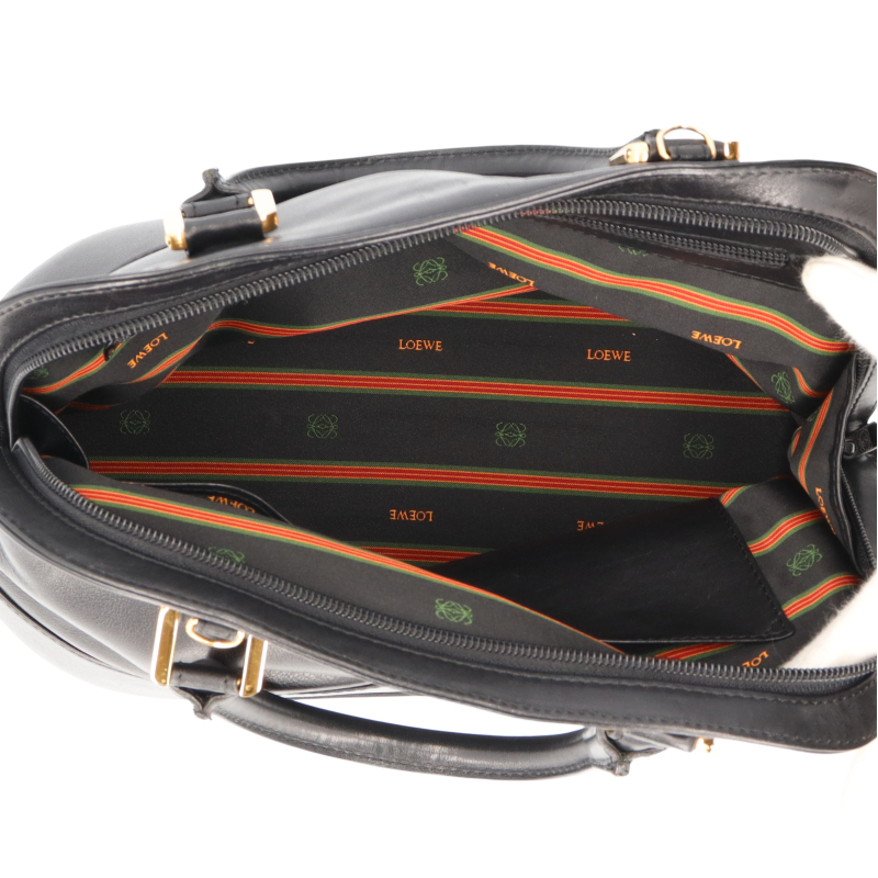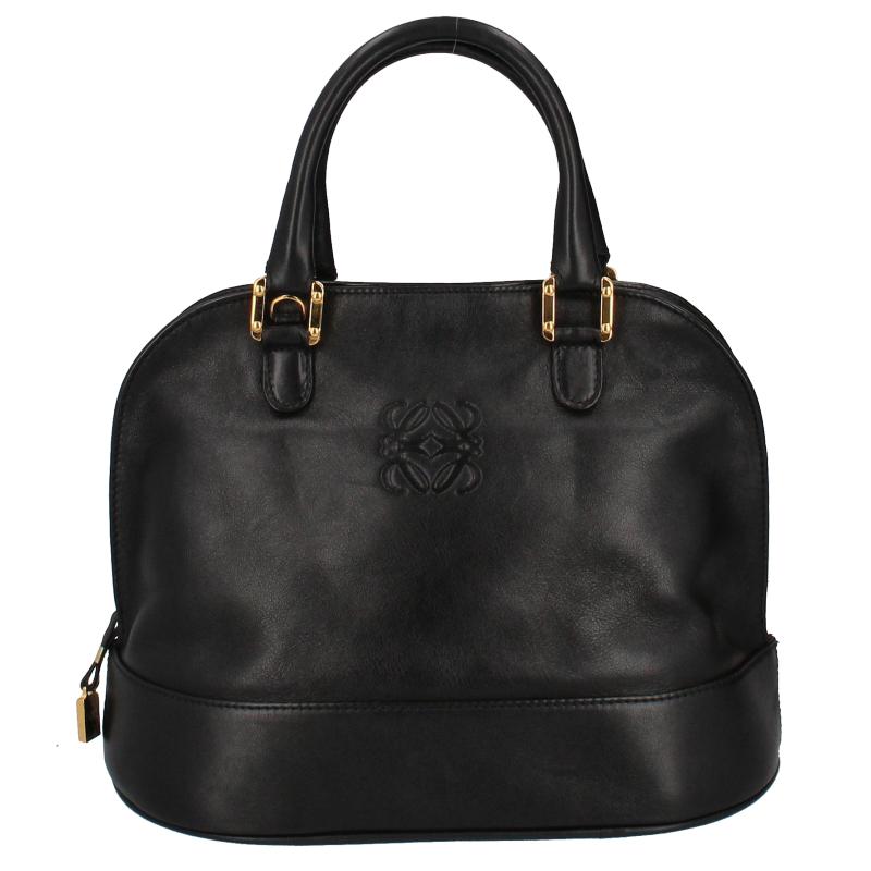 USED品。スペイン王室御用達ブランド「ロエベ」。柔らかいレザーにアナグラム柄が施されたハンドバッグです。