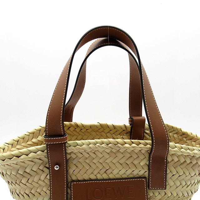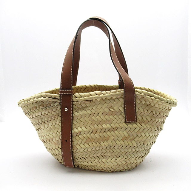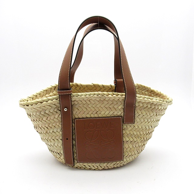 USED品。夏の定番として完璧なバスケットハンドバッグ。 ロエベのスペインのルーツを彷彿とさせるこの手編みのバスケットはヤシの葉で作り上げられており、高級なクラシックカーフスキンとの組み合わせでリゾートや日常使いまで幅広く活躍してくれます。
