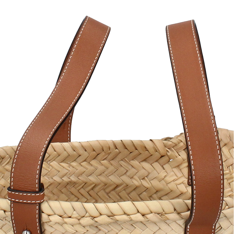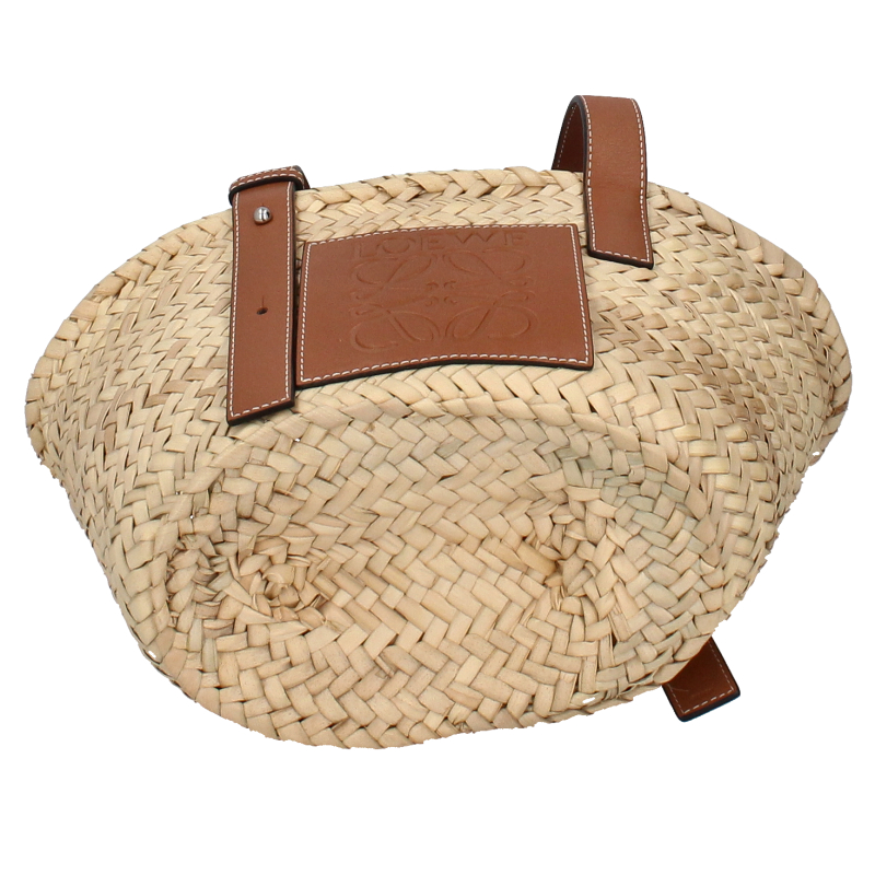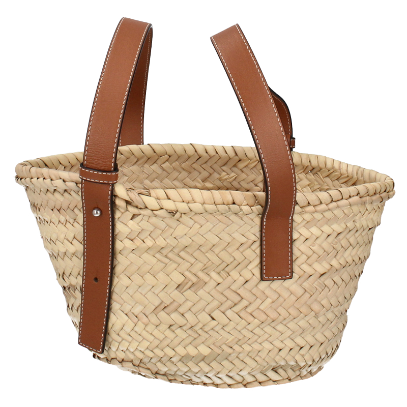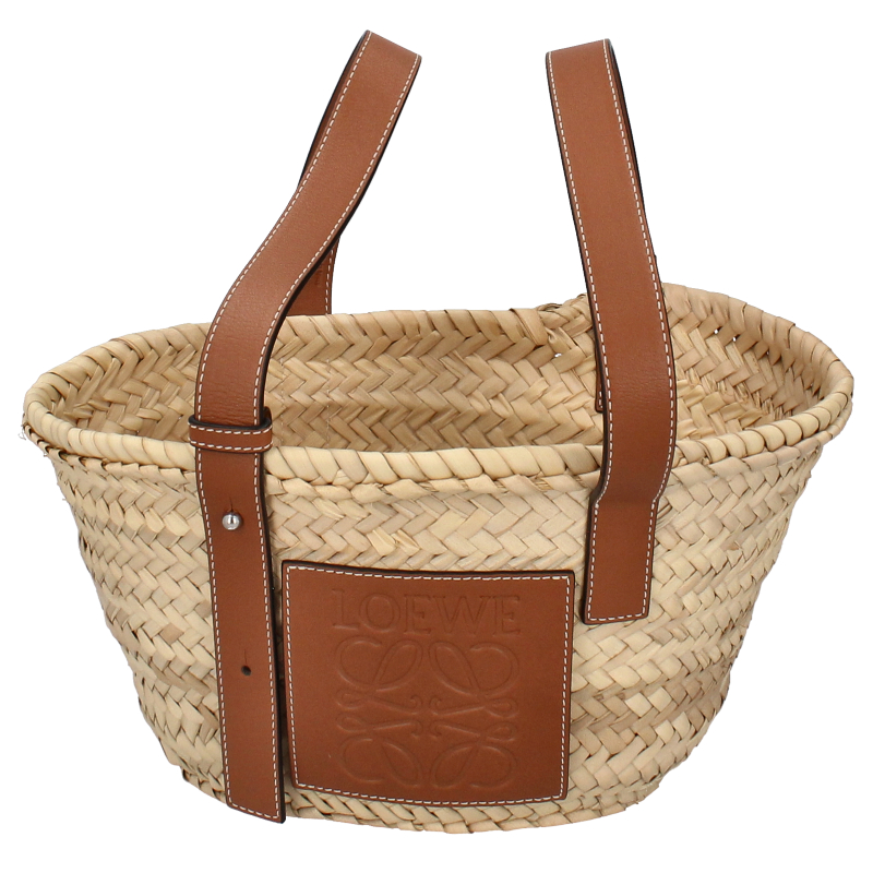USED品。夏の定番として完璧なバスケットハンドバッグ。 ロエベのスペインのルーツを彷彿とさせるこの手編みのバスケットはヤシの葉で作り上げられており、高級なクラシックカーフスキンとの組み合わせでリゾートや日常使いまで幅広く活躍してくれます。