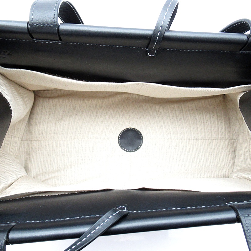 少々使用感有。若干のシワ、型崩れがあります。内部レザー部分に若干の擦り傷があります。内部底面に小さなペン跡、シワがあります。2019年8月購入品。