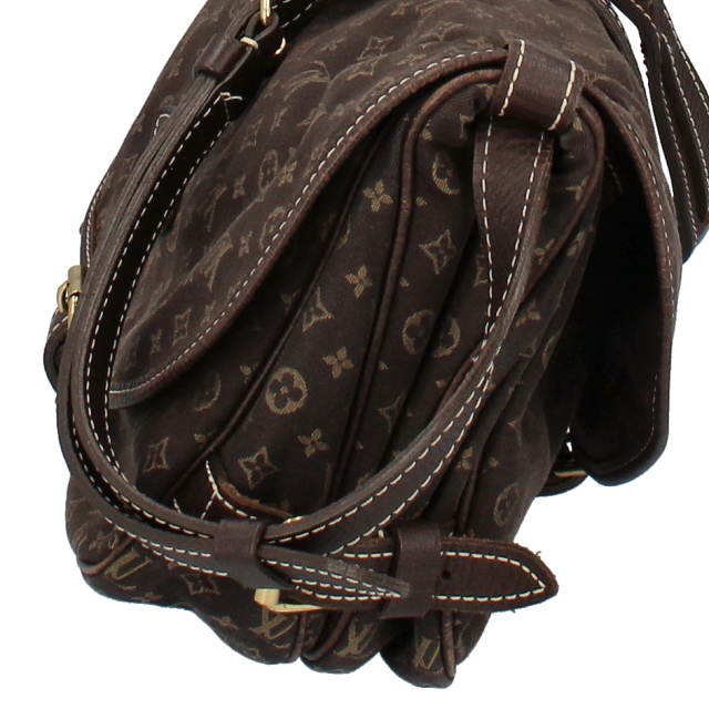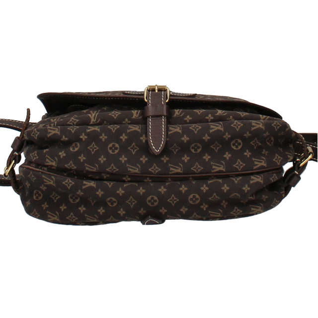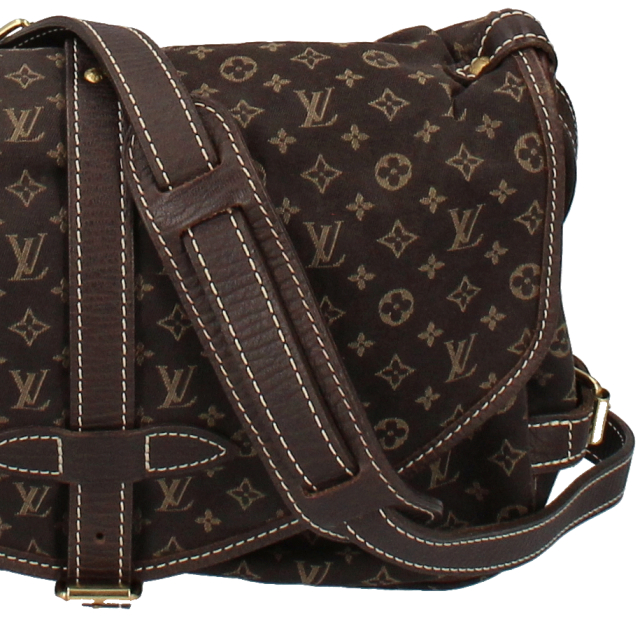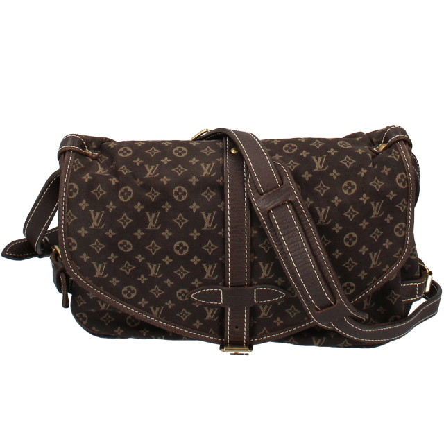 USED品。廃盤品。クラッシックな馬のサドルをモチーフにアレンジしたデザイン。モノグラム・ミニ・ランのソミュールは軽く、実用性に優れたショルダーバッグです。