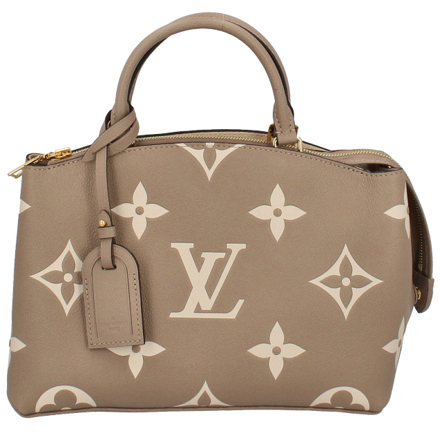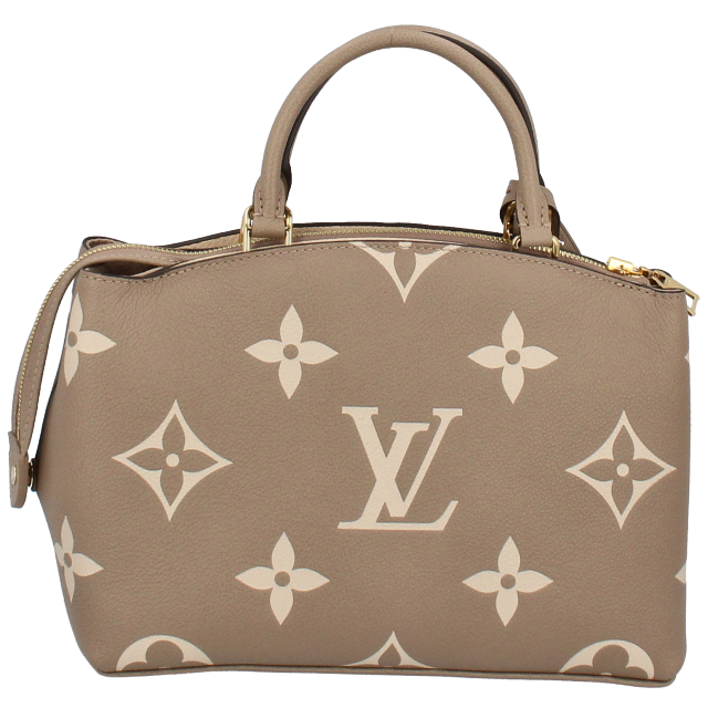 USED品。日常生活にぴったりのスマートで洗練された「プティ・パレ PM」。グレインレザーにモノグラム・パターンをオーバーサイズでプリント & エンボス加工して仕立てました。ゴールドカラーのパドロックとレザー製のネームタグが、メゾンが誇る美しいラゲージ作りの伝統を想起させるデザインです。取外し & 調節可能なストラップで、ショルダーバッグやクロスボディバッグとしてもお楽しみいただけます。