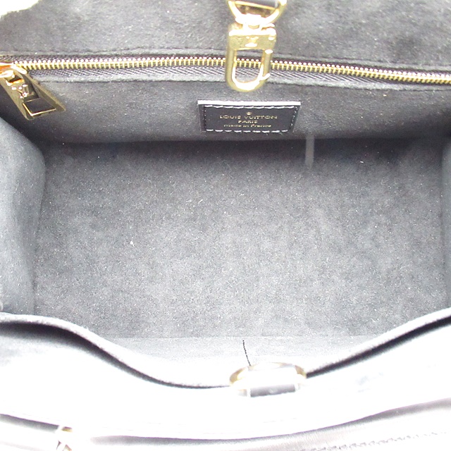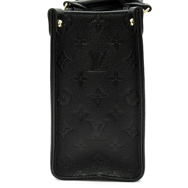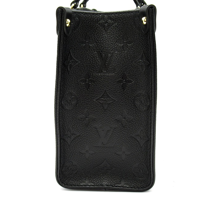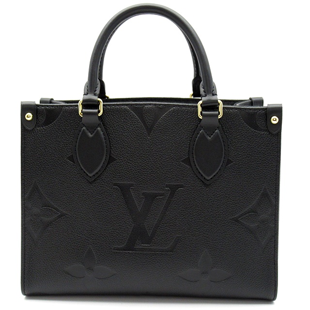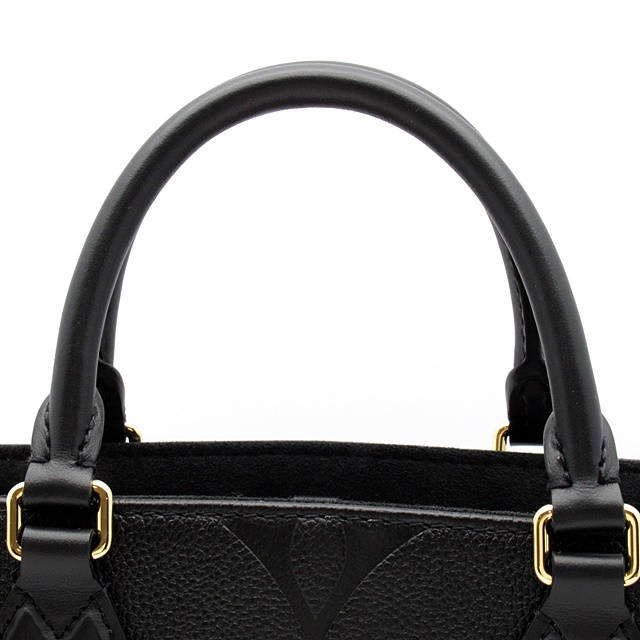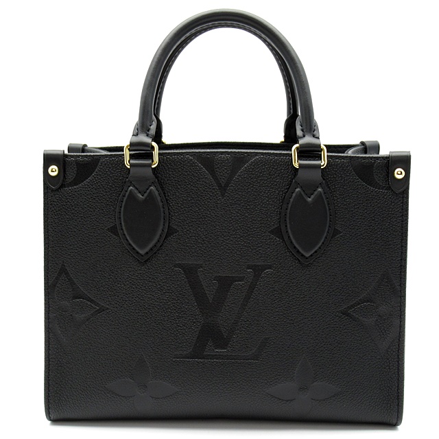 USED品。モノグラム・アンプラント レザーで仕立てた「オンザゴー PM」。柔らかなレザーにエンボス加工で施した大ぶりのモノグラム・パターンがモダンな雰囲気を放ちます。コンパクトでありながら、iPad Miniなどの必需品がしっかりと入る収納力が魅力です。