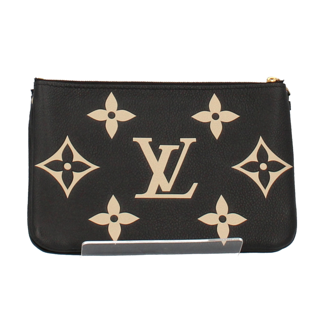 USED品。手持ちでもクロスボディバッグとしてもお楽しみいただける、スタイリッシュかつ実用的な「ポシェット・ドゥーブルジップ」。コントラストを描くモノグラム・ミディアム パターンのエンボス加工が特徴のモノグラム・アンプラント レザーで仕立てた、ステートメントを放つアイテムです。スマートフォンや貴重品を収納できる2つのファスナー付きポケットと、中央には必需品を取出しやすいコンパートメントを備えています。