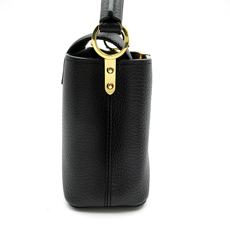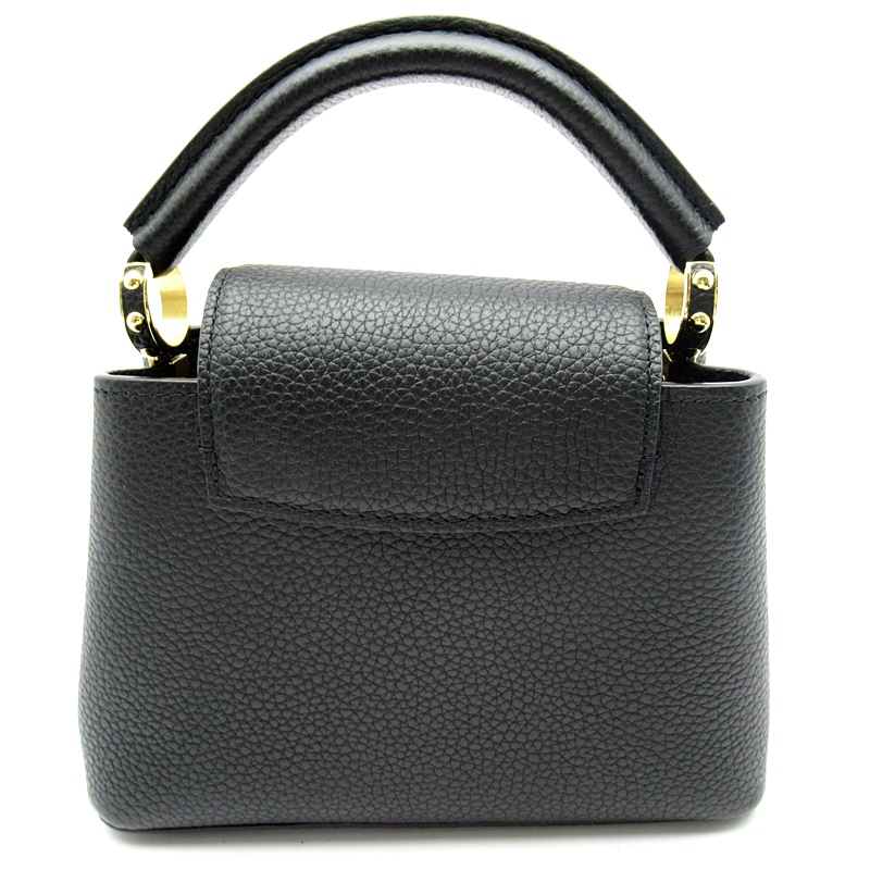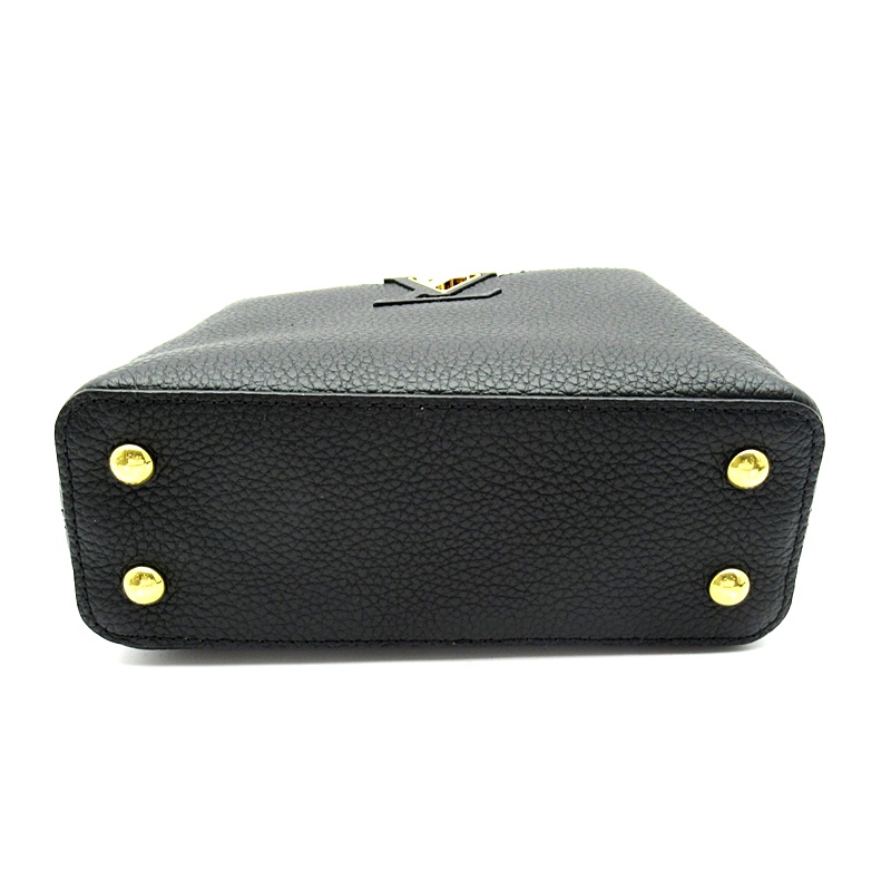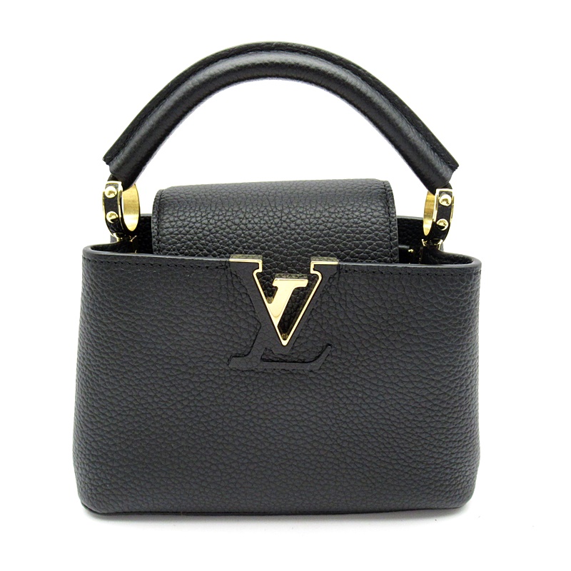 USED品。シックなブラックのトリヨンレザーに、ゴールドカラーのハンドルマウントリングとアイコニックなLV イニシャルを添えた、洗練されたデザインの「カプシーヌ MINI」。定番アイテムをスモールバージョンに仕上げました。幅広の取外し可能なストラップ付きで、ショルダーバッグやクロスボディバッグとしてもご使用いただけます。