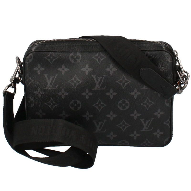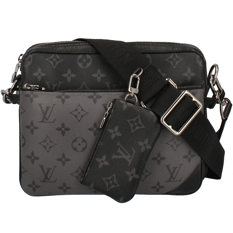 USED品。モノグラム・エクリプス キャンバスと、そのカラーを反転させたモノグラム・エクリプス リバース キャンバスを使用した「トリオ・メッセンジャー」。ボディには取外し可能なファスナー付きポケットを、ストラップにも同じく取り外し可能なコインパースを備えた、伝統的なクロスボディバッグを進化させたアイテムです。