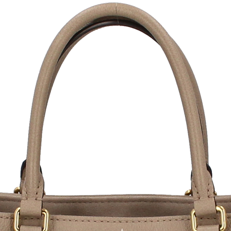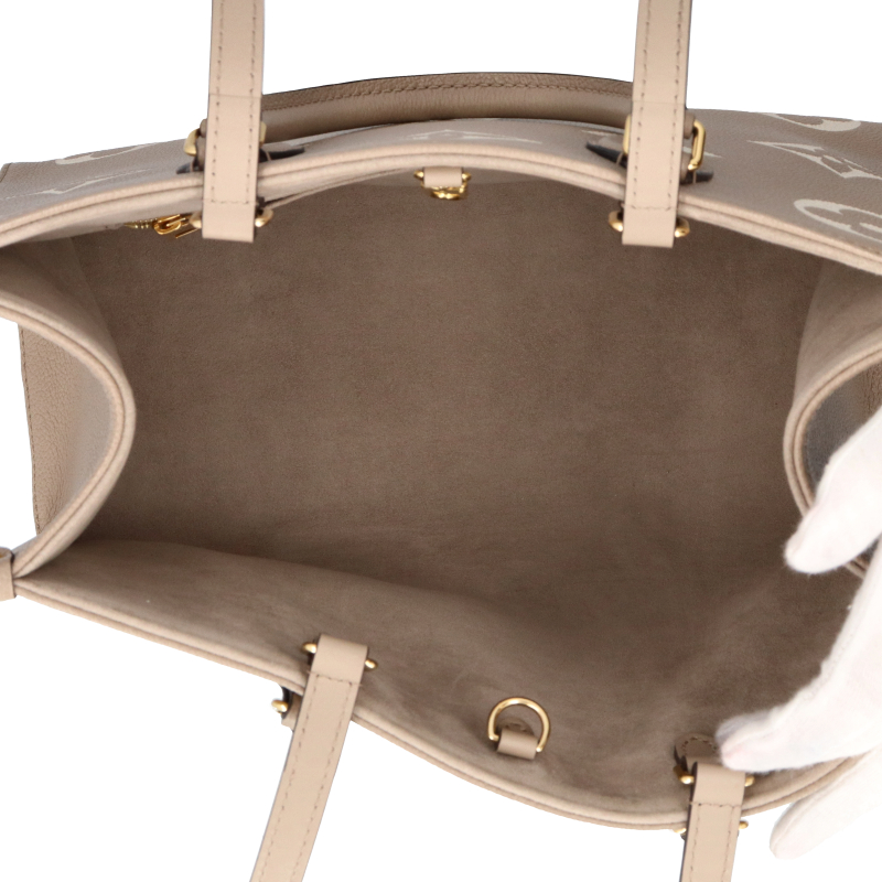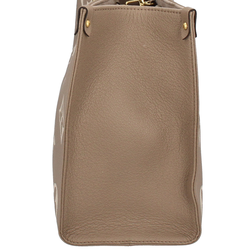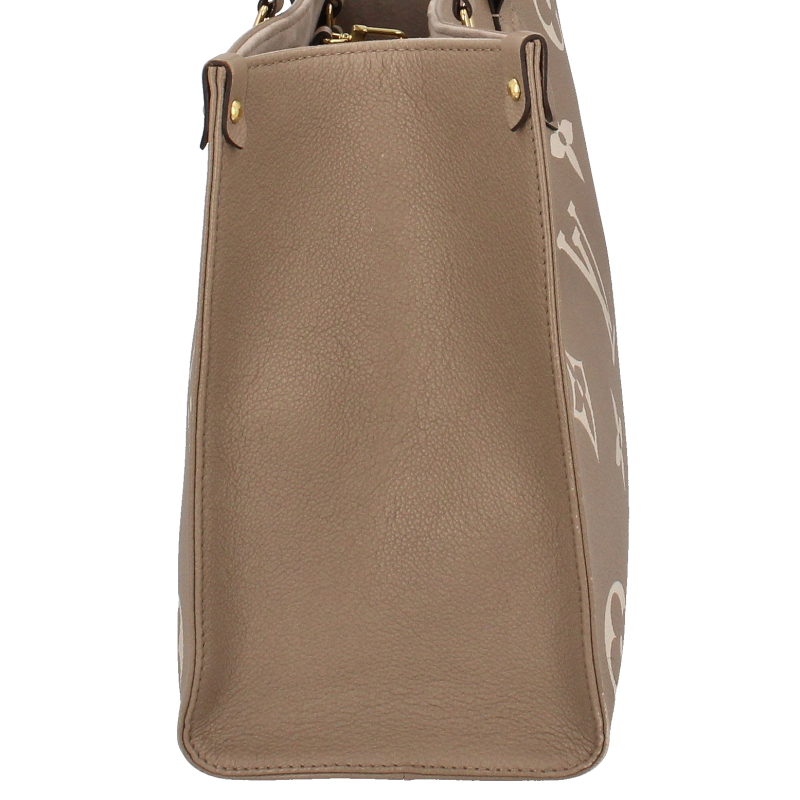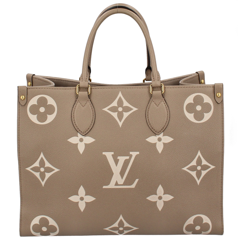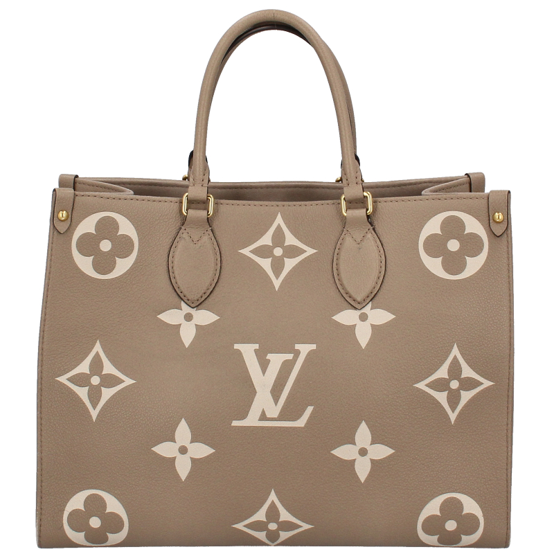 USED品。長短2種類のハンドルで、手持ちやショルダーバッグとしてもお楽しみいただけるミディアムサイズの「オンザゴー MM」。しなやかなグレインカーフレザーに、ミディアムサイズのモノグラム・パターンをプリントとエンボス加工であしらいました。収納力に優れ、ノートパソコンなどビジネスの必需品も持ち運べる汎用性の高さも魅力。日常使いに最適なバッグです。