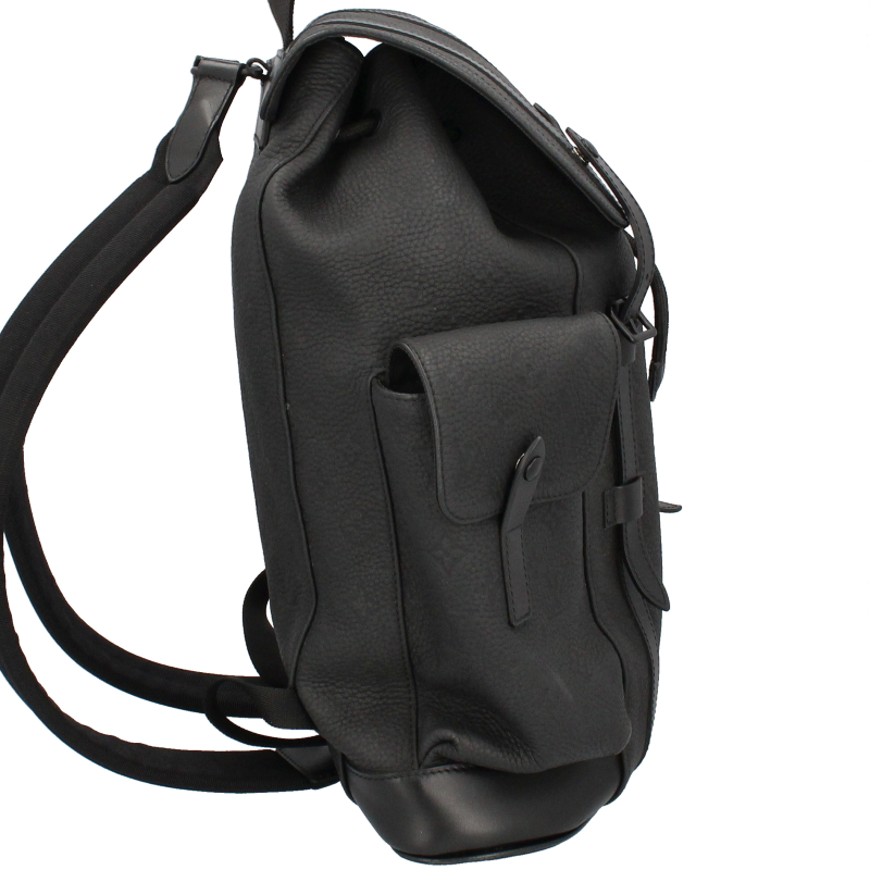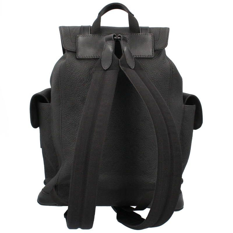 USED品。2つのサイドポケットと複数の機能的な内ポケットをあしらい、ミディアムサイズに仕上げたバックパック「クリストファー MM」。トリヨンレザーにモノグラム・パターンをエンボス加工し、ブラックのレザーストラップとマットなブラックのメタルパーツをあしらいました。ドローストリングを添えたスナップ開閉式で、中身をしっかり収納できます。