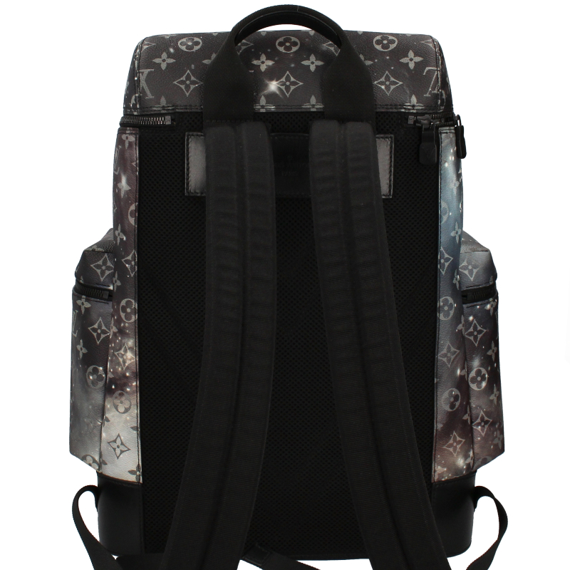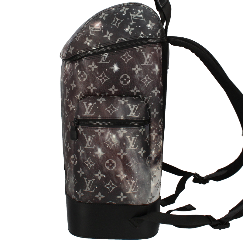 USED品。銀河や宇宙服などのイメージから生まれたギャラクシー。精巧に描かれた銀河ときらめく星々の上に、定番のモノグラムがプリントされています。旅情とストーリー性を感じさせる、グラフィカルなパターンです。トリミングや金具は控えめなブラックカラーが使われ、クールな雰囲気です。