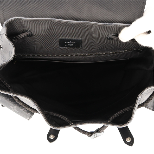 USED品。ブラックレザーのトリミングを施したモノグラム・エクリプス リバース キャンバスが、印象的な表情を演出するバックパック「クリストファー PM」。2つのサイドポケットが必需品の出し入れを容易にし、スナップボタン付きのレザーフラップで開閉するボディ部分が大切なアイテムをしっかりと守ります。堅牢なハイキング用のリュックサックから着想を得たデザインを、小ぶりに再解釈しました。