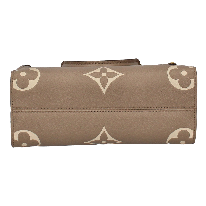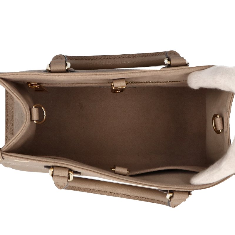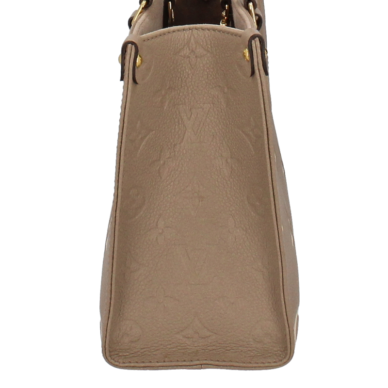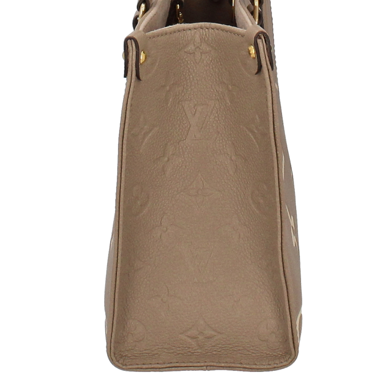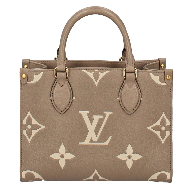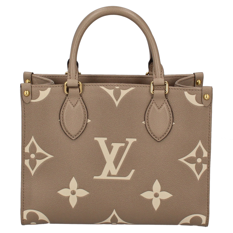 USED品。1968年にルイ・ヴィトンが発表した「サック・プラ」から着想を得た「オンザゴー PM」。モノグラム・アンプラント レザーをアップデートし、ミディアムサイズのモノグラム・パターンをバイカラーのエンボス加工で施して仕立てました。