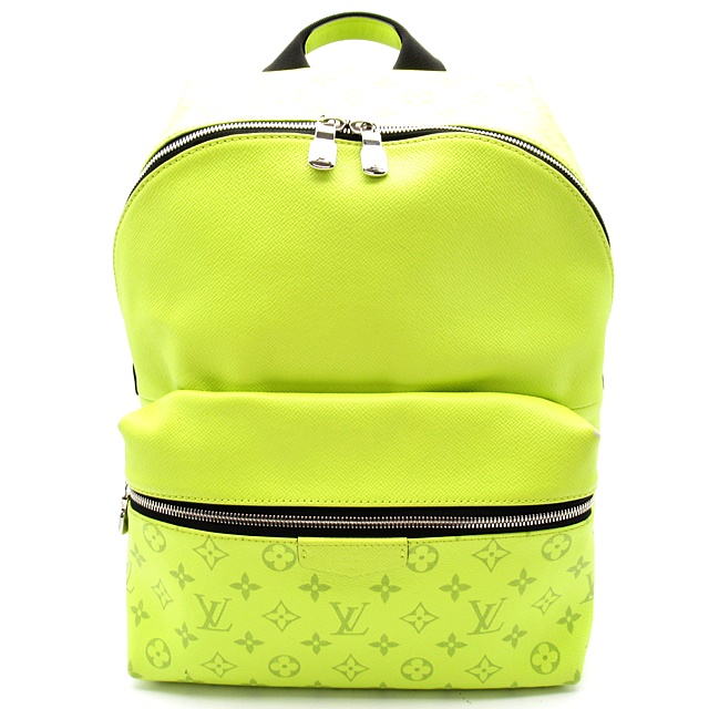 USED品。廃盤品。ネオンカラーのモノグラム・キャンバスとタイガ・レザーを組み合わせたクラシカルなカレッジバックパック。さまざまなスタイルに合わせてお楽しみいただけるアイテムはです。
