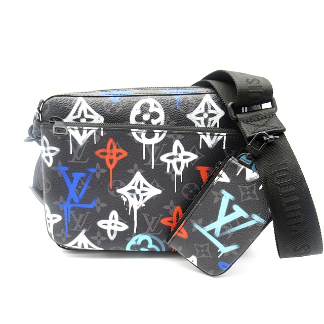 USED品。廃盤品。グラフィティ風にアレンジしたモノグラム・パターンをあしらったモノグラム・エクリプス キャンバスで再解釈した「トリオ・メッセンジャー」。3つのアイテムを一体化した、モジュラータイプのメッセンジャーバッグは、メインコンパートメントの他に、取外し可能なファスナー付きポケットと、ストラップに取付け可能なコインやカードなどを収納できる非接触型決済に最適なポーチを備えています。