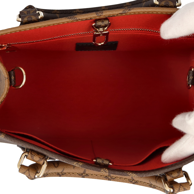 新品。ファッション性と機能美を兼ね備えた、日常使いにぴったりの「オンザゴー PM」。モノグラム & モノグラム・リバース キャンバスを組み合わせ、トレンディなモノグラム・ジャイアント パターンをあしらいました。クリームベージュのトロンハンドルとシグネチャーをジャカード織りの技法で織り込んだストラップが、コントラストを描きます。取外しできるコインパースは、小銭や貴重品を収納するのに最適です。