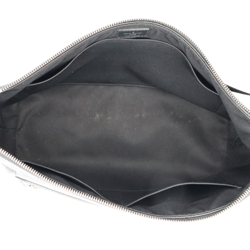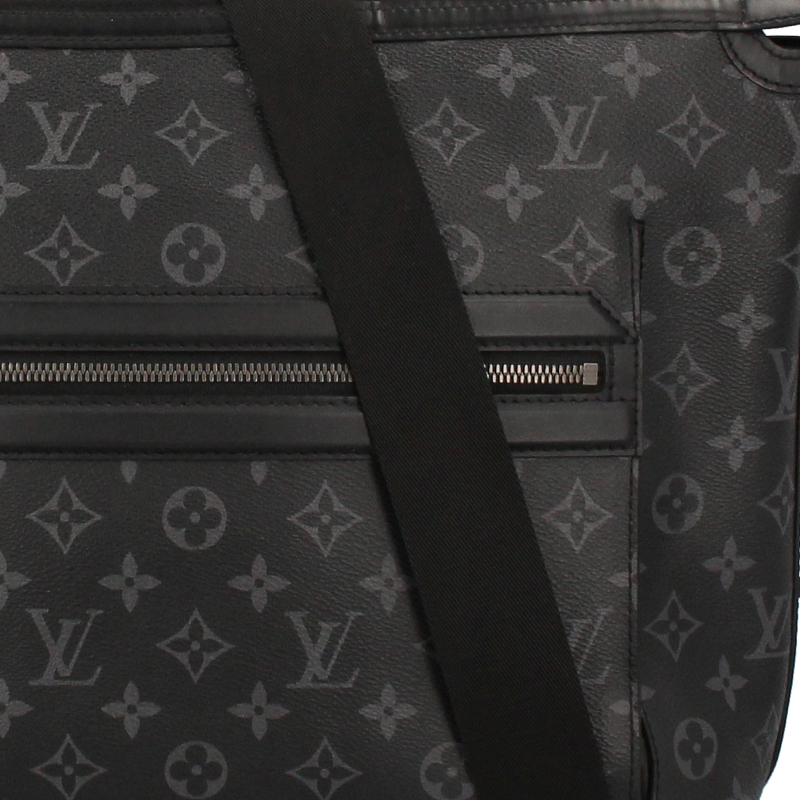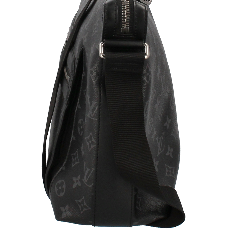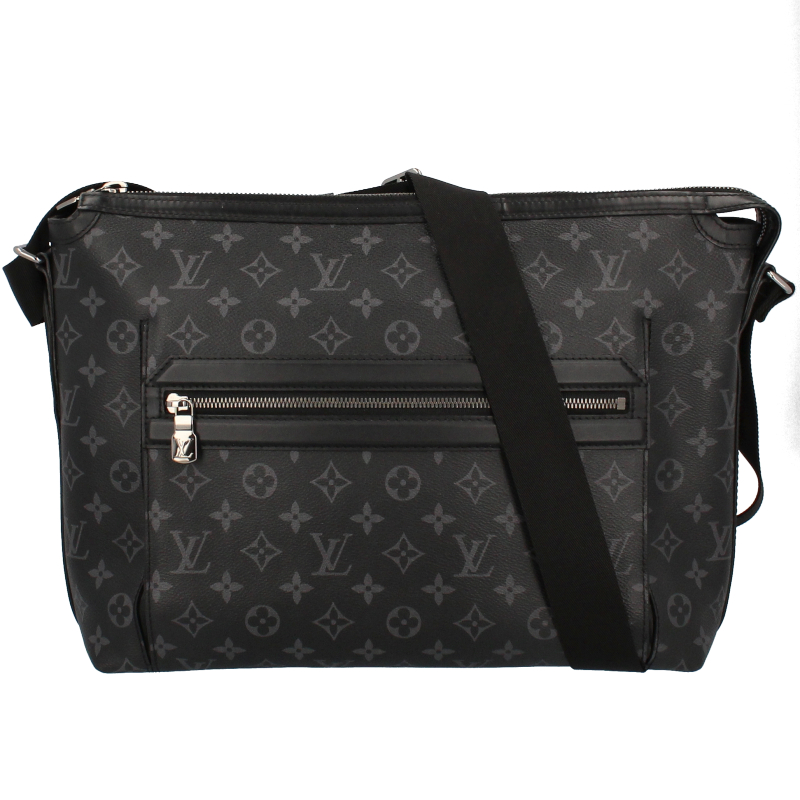 USED品。廃盤品。グレーとブラックのコントラストが光るモノグラムエクリプスキャンバスを使用した「オディセメッセンジャーMM」。シンプルなコンパートメントに必需品やA4サイズの書類、タブレットなどを収納できるサイズ感。肩に掛けたり、斜め掛けにしたり、スタイルに合わせた持ち方ができる点も魅力です。