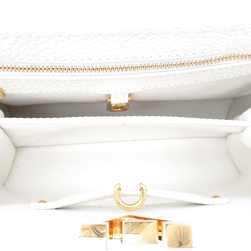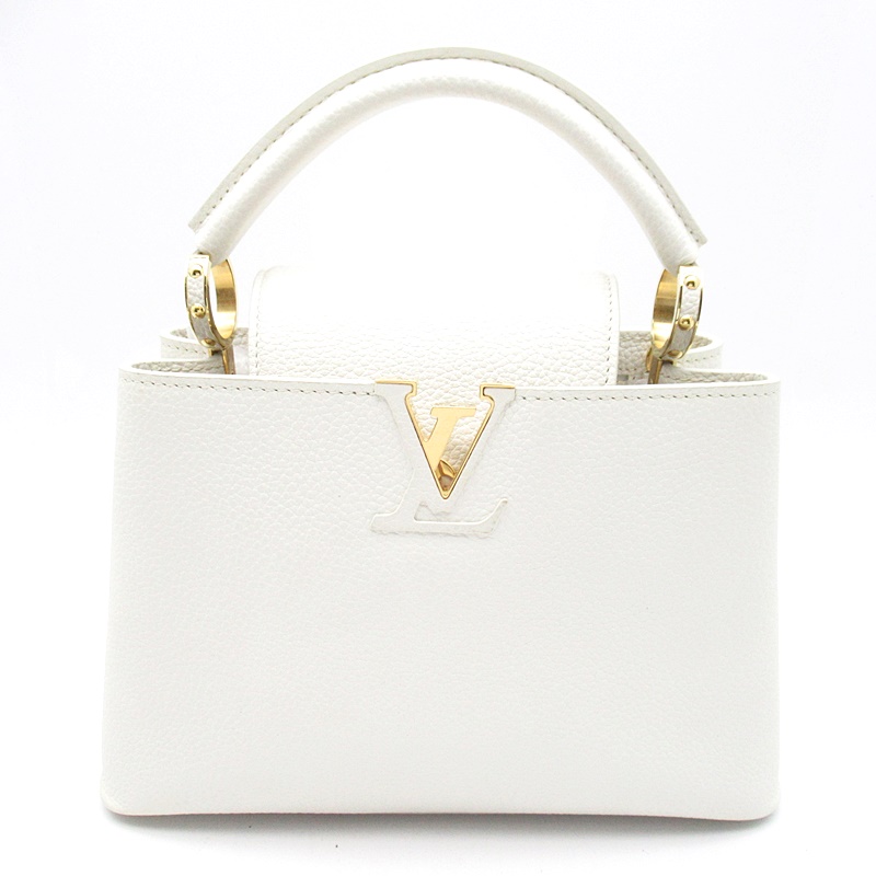 USED品。ヴィトンでも人気を誇る「カプシーヌ」。トリヨンレザーで作られたクラシックなカプシーヌBBハンドバッグにはレザーで包まれたLVイニシャル、歴史的なトランクにインスパイアされた宝石のようなハンドルマウント、モノグラムフラワー モチーフをあしらった特徴的なフラップなど、数多くのメゾンのシグネチャーが見られます。