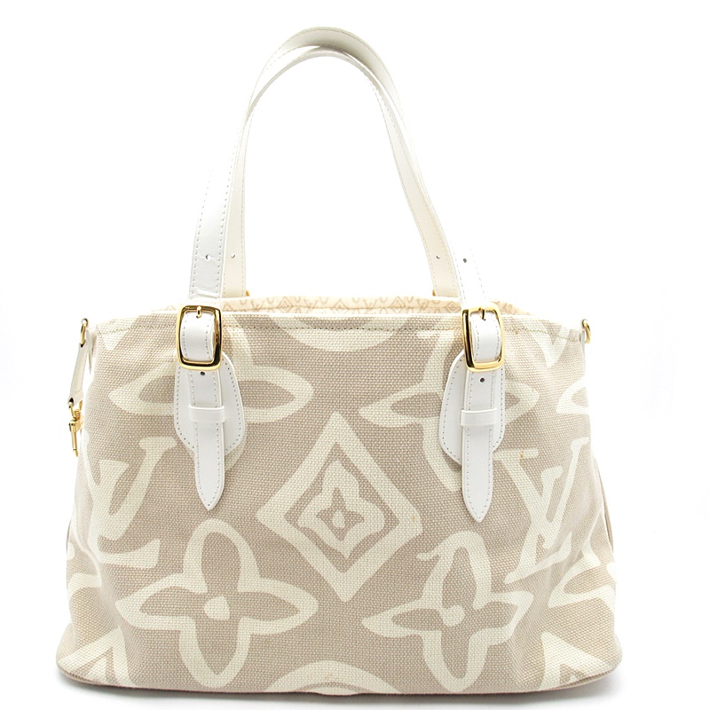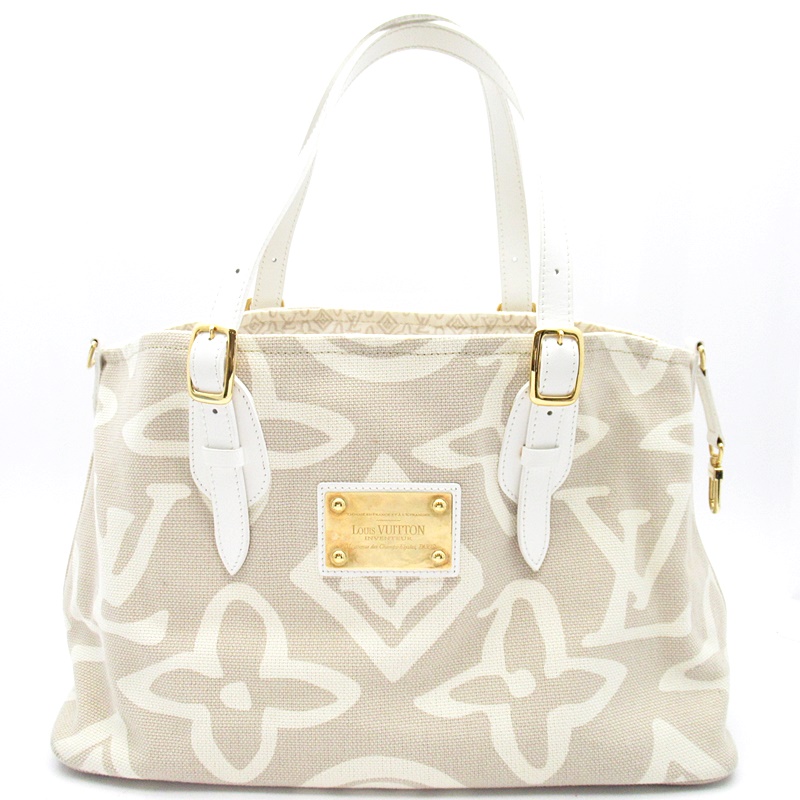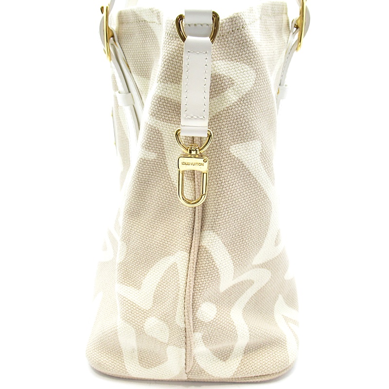 USED品。廃盤品。クルーズコレクション2008年春夏モデル。正面のゴールドプレートやハンドルのホワイトレザーさわやかなイメージでお持ち頂けます。