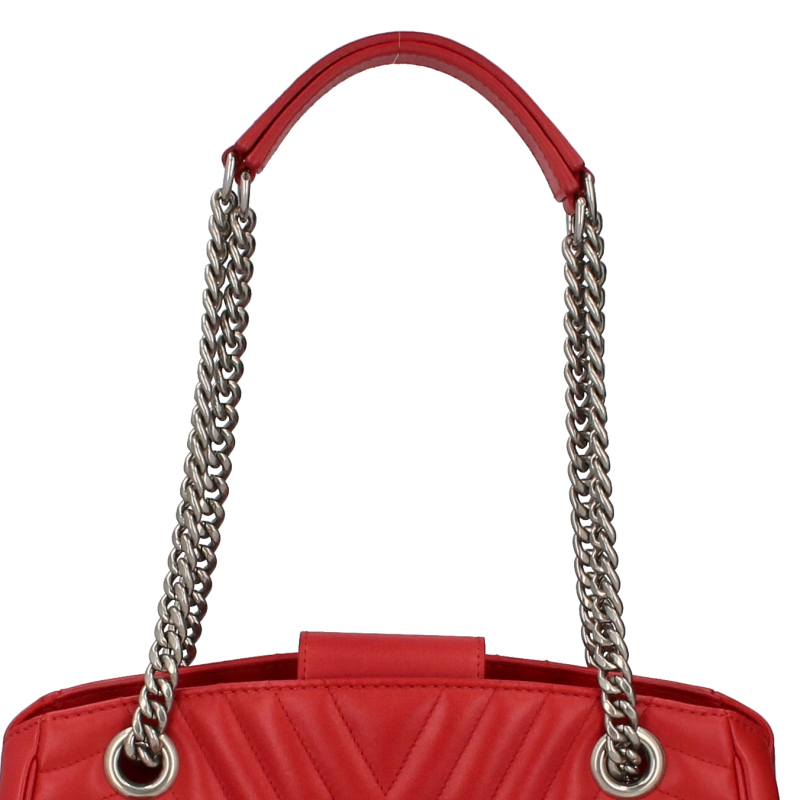 USED品。ラグジュアリーなキルティングとヴィンテージ加工を施したメタルがあらゆる装いを華やかに演出し調節可能なチェーンハンドルでショルダーバッグとしてもお使いいただけます。