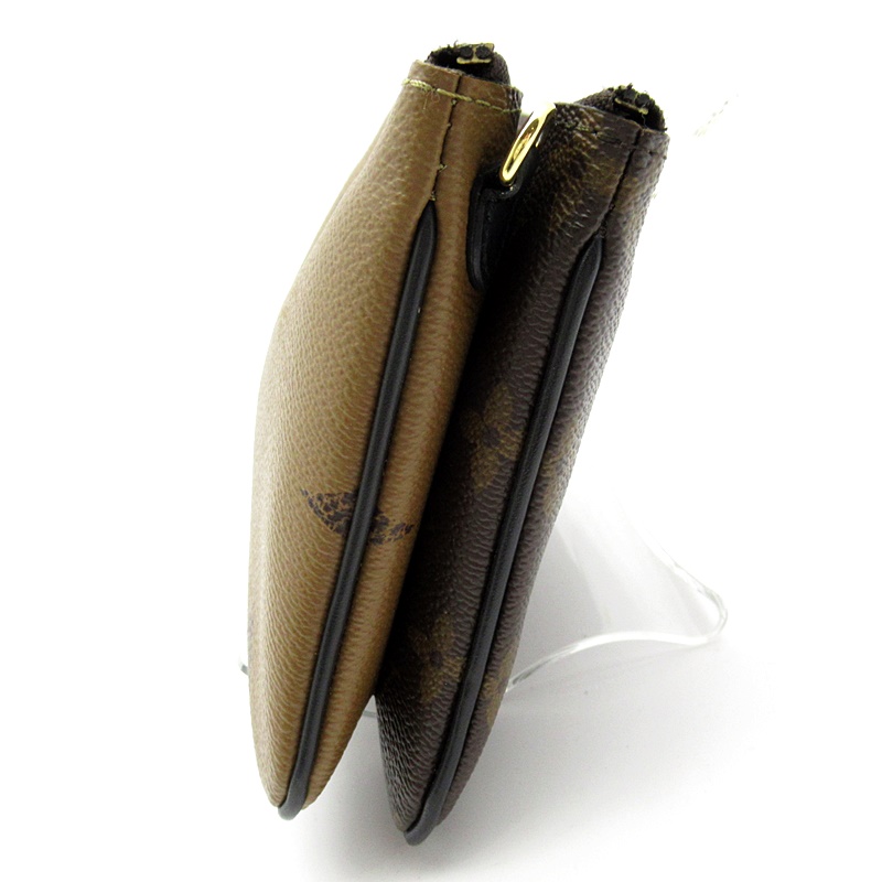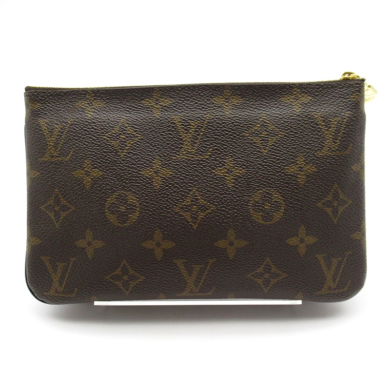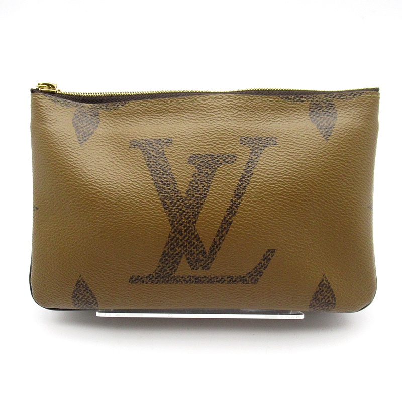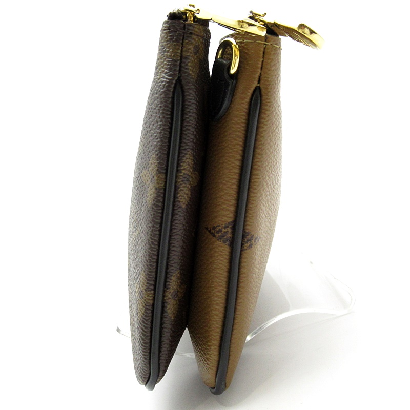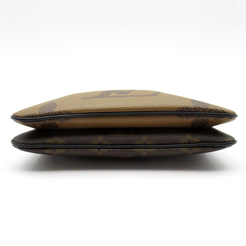 USED品。タイムレスなモノグラム・キャンバスとトレンディなモノグラム・ジャイアント リバース キャンバスを組み合わせた「ポシェット・ドゥーブル ジップ」。取外し&調節可能なレザーストラップ付きで、さまざまな持ち方をお楽しみいただけます。毎日の必需品を整理するのに便利な2つのファスナー付きポケットが備わり、そのうちの1つには3つのカード用スロットが付いています。