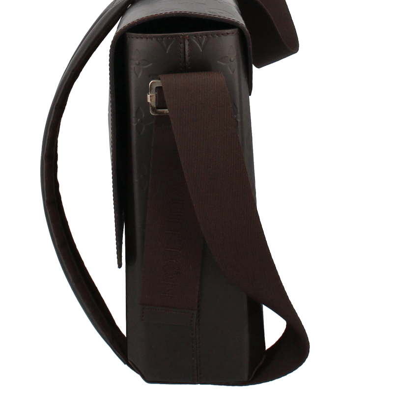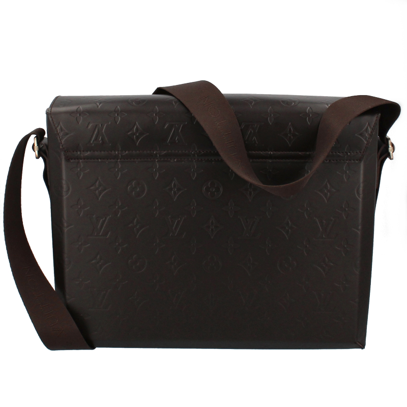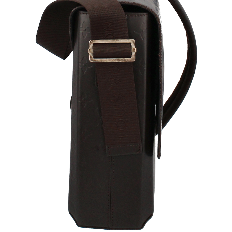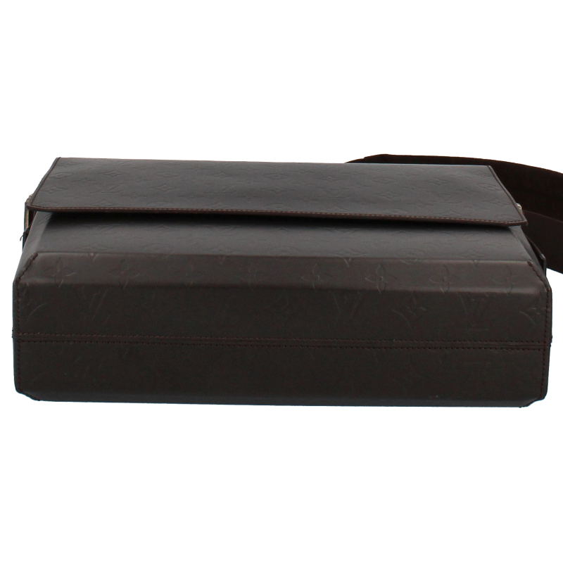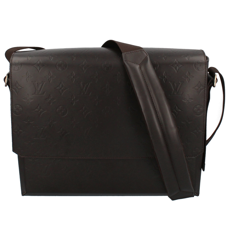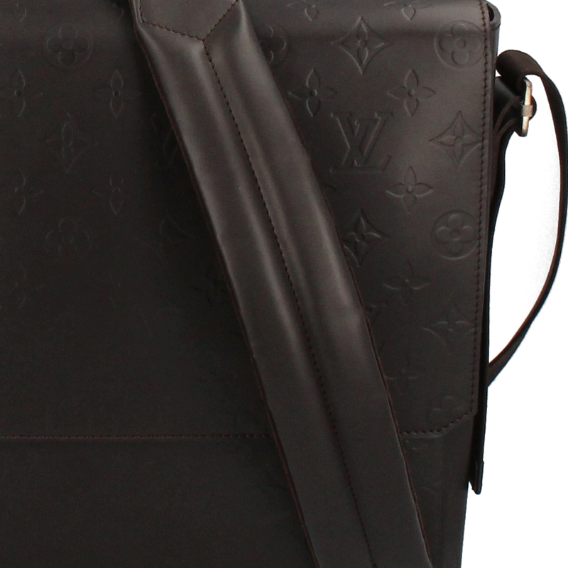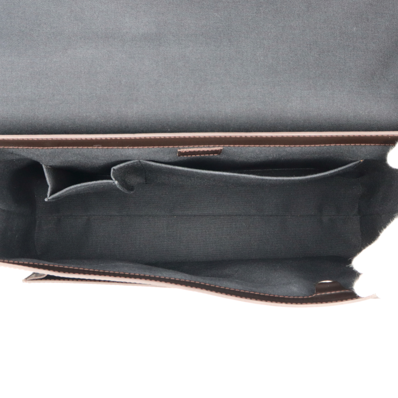 USED品。廃盤品。レザーにエンボスされたモノグラムが上品なデザイン。A4サイズの書類が楽に入るビジネスシーンにぴったりのショルダーバッグです。