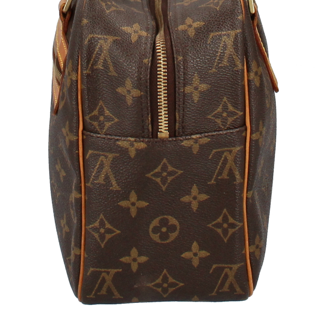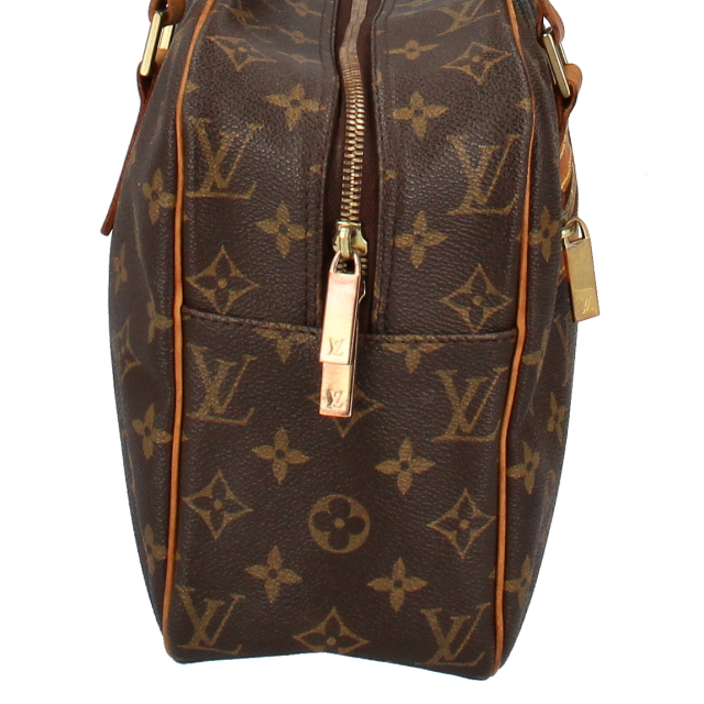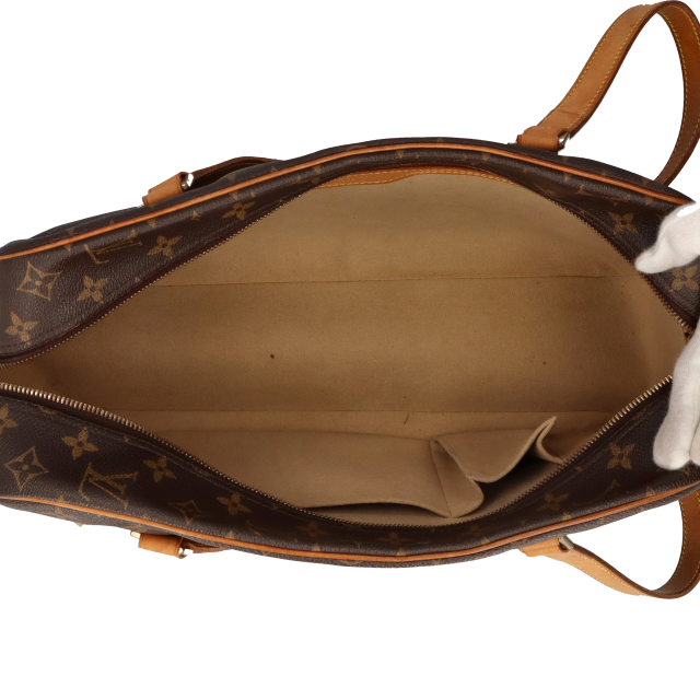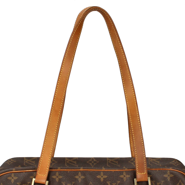 多少使用感有。ヌメ革に色焼け、シミ、擦れ、黒ずみがあります。金具にくすみ、変色があります。内部に汚れが少々あります。