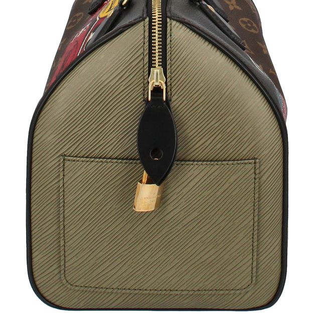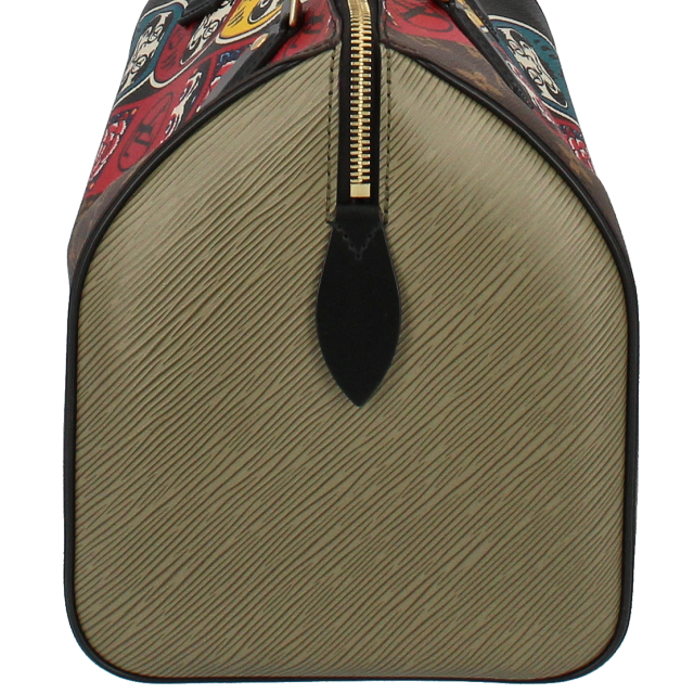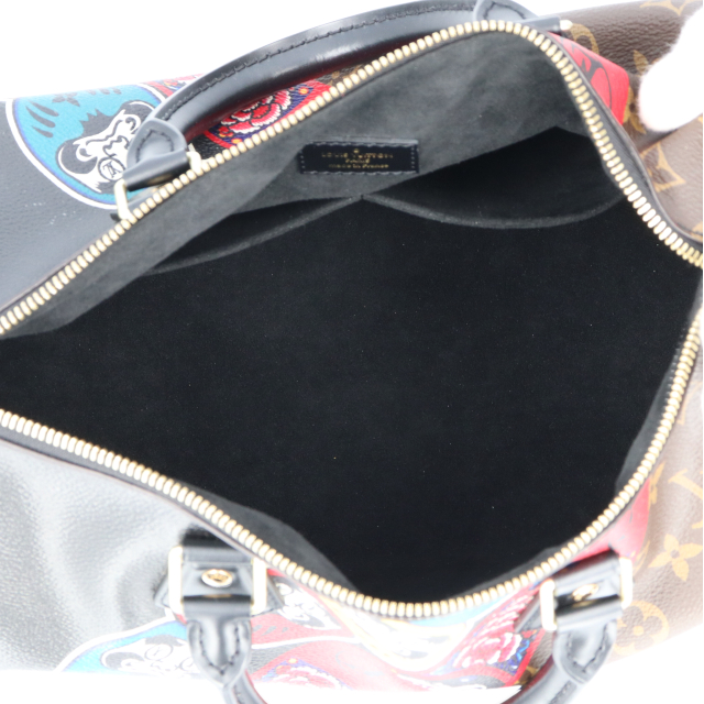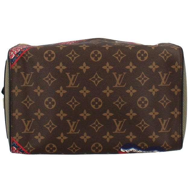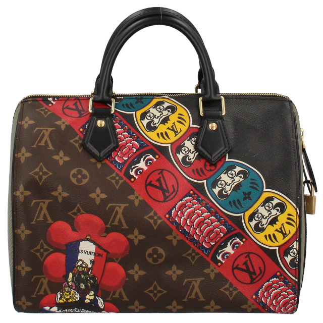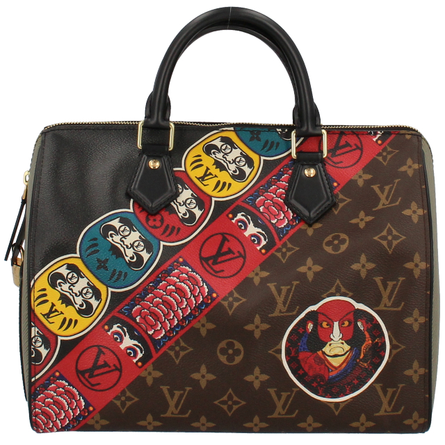 USED品。廃盤品。LOUIS VUITTON・2018年クルーズコレクション・山本寛斎コラボレーション作品。日本の伝統文化である「歌舞伎・七福神・達磨」がダイナミックに描かれたユニークな一品で、流通数が少ない希少モデルです。