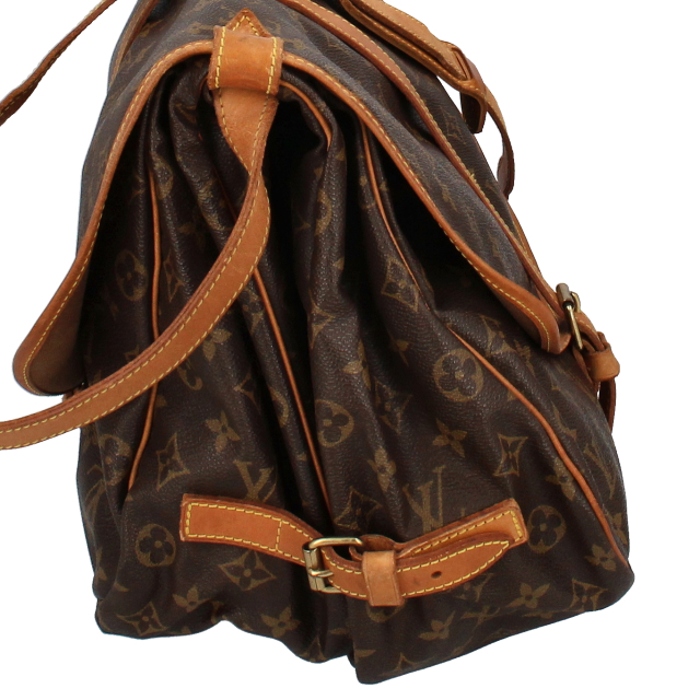 多少使用感有。角スレがあります。ヌメ革に色焼け、シミ、擦れ、擦り傷、黒ずみ、汚れがあります。ショルダー内側にシワとヒビがあります。金具に傷、サビがあります。