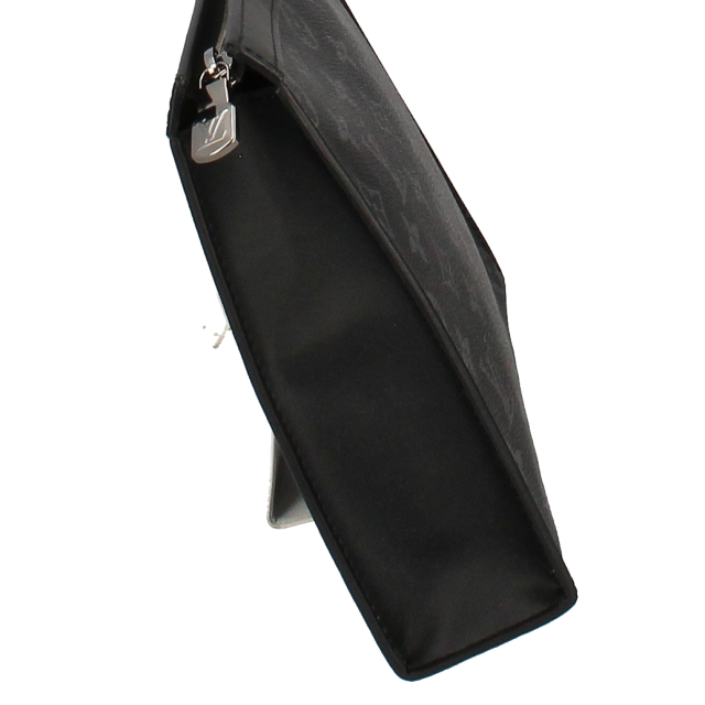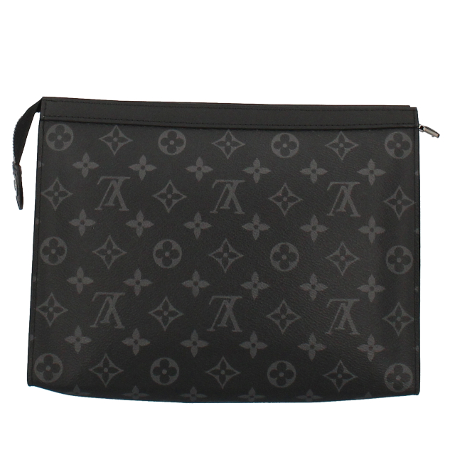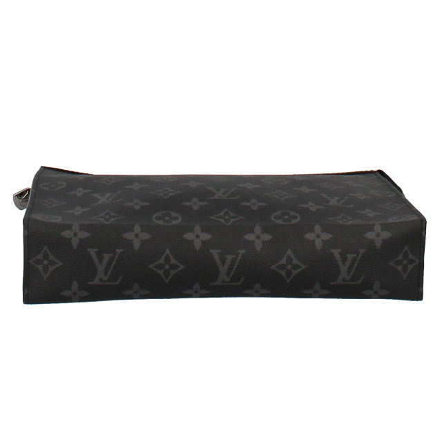USED品。ブラックとグレーのアイコニックな新素材、モノグラム・エクリプス キャンバスで仕立てた「ポシェット・ヴォワヤージュ MM」。新しいサイズのマスキュリンなポーチは、トラベルバッグの中身を整理するのに最適です。