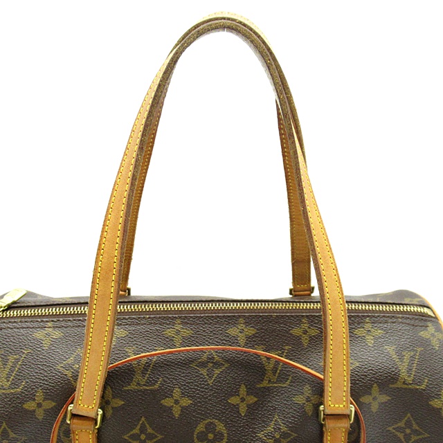 多少使用感有。ヌメ革に色焼けと黒ずみがあります。本体とハンドルのコバに擦れがあります。
