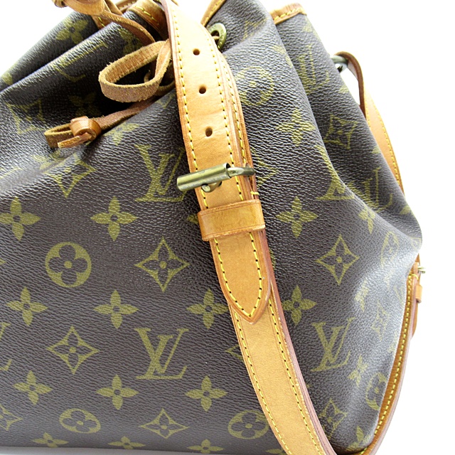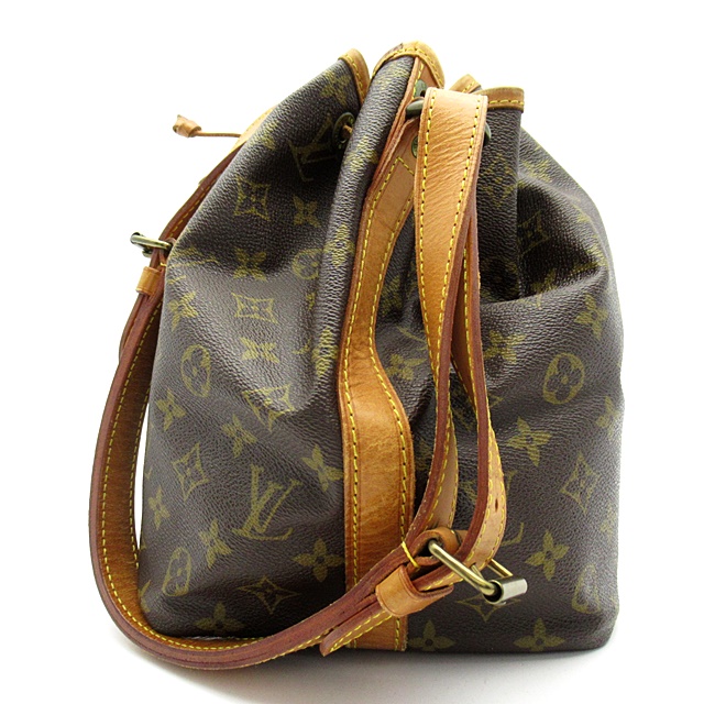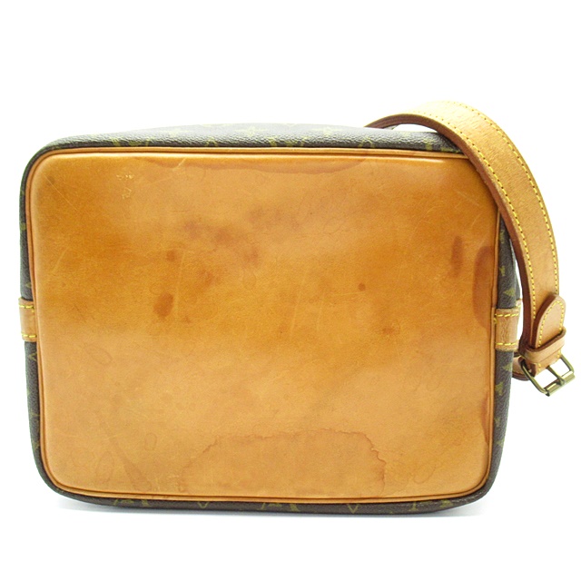 多少使用感有。ハンドルや底表面のヌメ革部分にシミ、黒ずみ、色焼けがあります。ショルダーにヒビが少々あります。