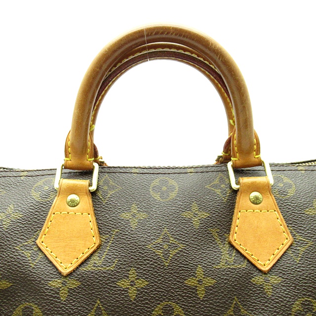 多少使用感有。ヌメ革に色焼け、シミ、擦れ、擦り傷、黒ずみがあります。ハンドルに糸のほつれがあります。