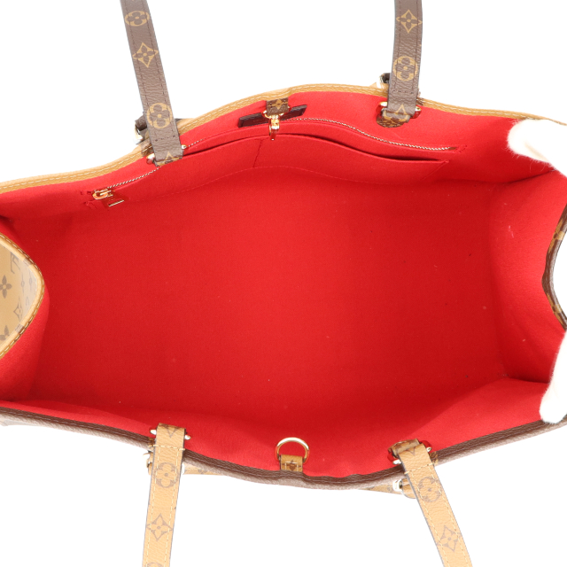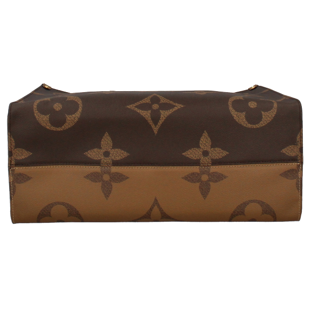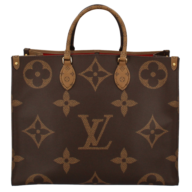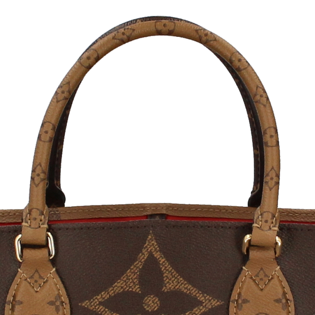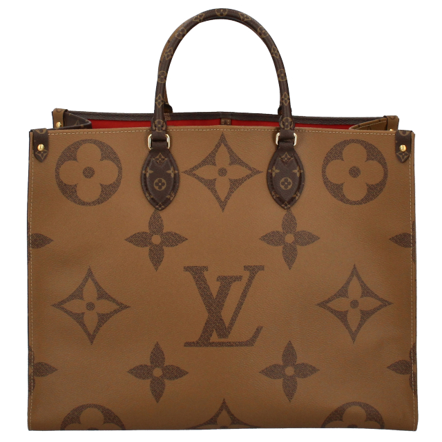 USED品。インパクトあるデザインと機能性を兼ね備えた「オンザゴー GM」。ジャイアント・モノグラム キャンバスで仕立て、両サイドとハンドルにモノグラム・リバース パターンをあしらうことで、異なる色とスケール感がスタイリッシュなコントラストを描く特別な1品に仕上がりました。収納力に優れ、日常使いに最適なバッグです。