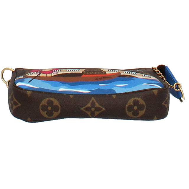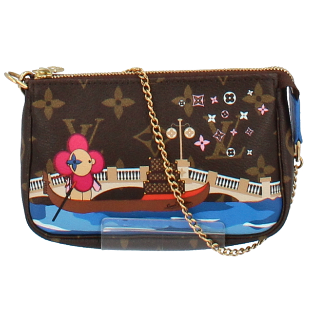 USED品。ルイ・ヴィトンのマスコット「ヴィヴィエンヌ」が視線を集める、モノグラム・キャンバスを使用した「ミニ・ポシェット・アクセソワール」。2019年クリスマス限定商品です。