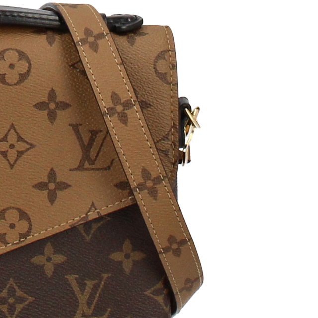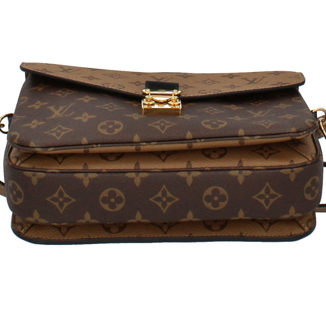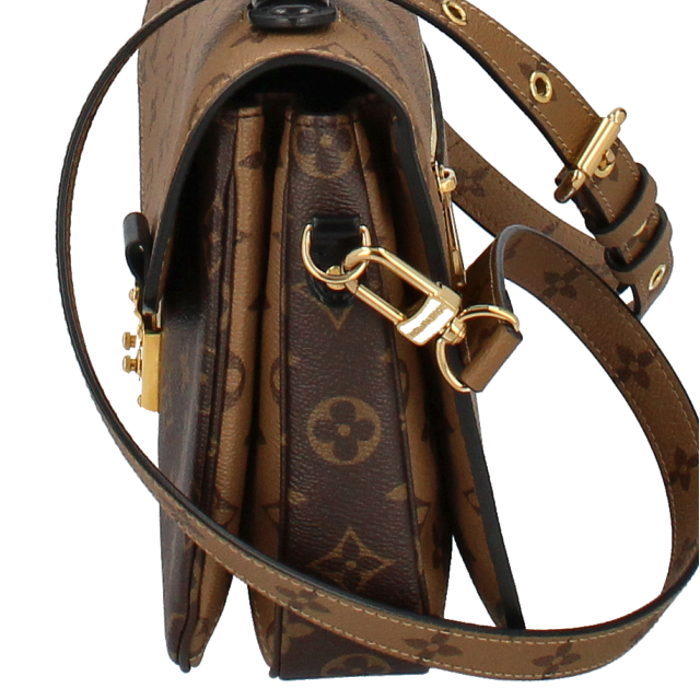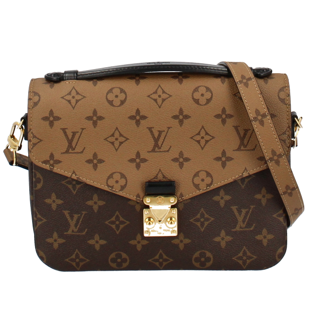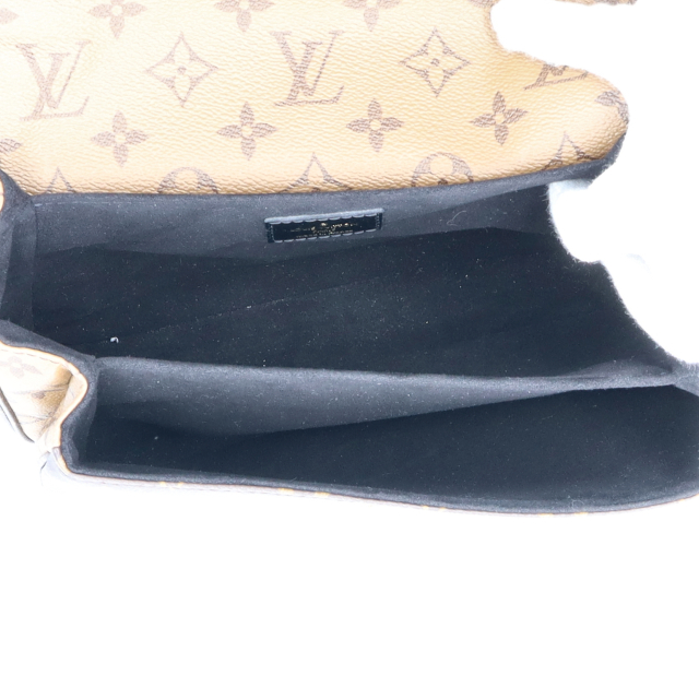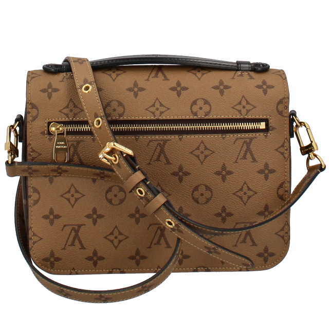 USED品。特徴的なスクールバッグ風のシルエットがファッショナブルな女性たちの視線を集める「ポシェット・メティス MM」。見た目以上の収納力を誇る多機能なアイテムは、シックなトップハンドルと取外し可能なロングストラップでさまざまなスタイルをお楽しみいただけます。