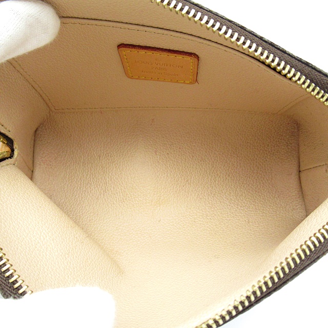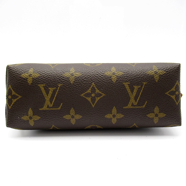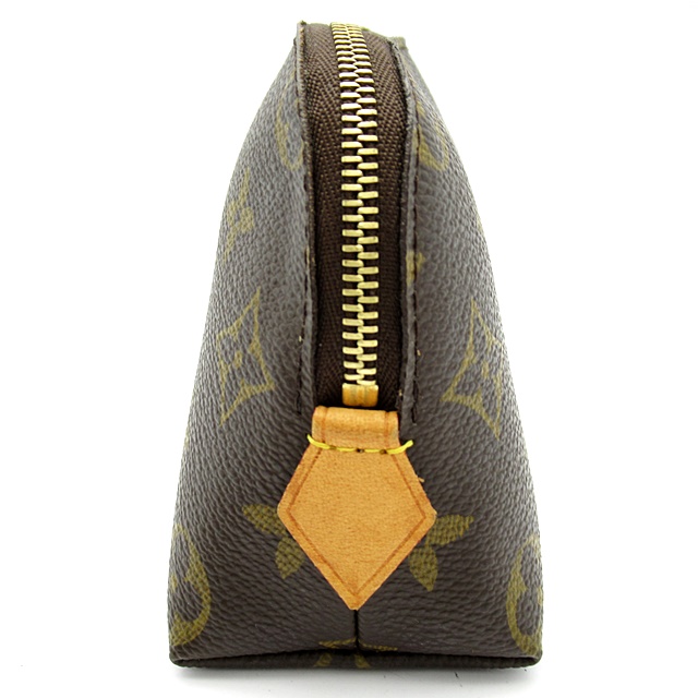 USED品。コンパクトな化粧用ポーチ「ポシェット・コスメティック PM」。 ハンドバッグにスマートに収まります。平らなボトムにラップアラウンド式の開閉で、化粧品を簡単に取り出せます。