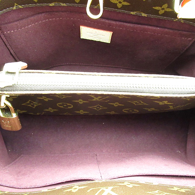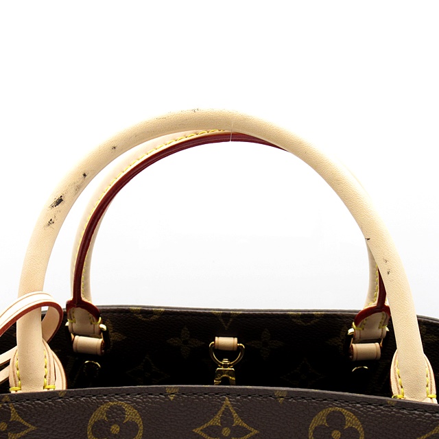 少々使用感有。ハンドルは全体的に黒い汚れがついています。ショルダーストラップはコーティングの剥がれとベタつきがあります。