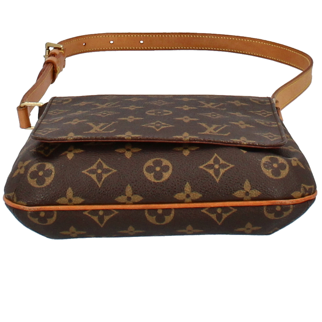 多少使用感有。角スレがあります。ヌメ革に色焼け、シミ、擦れ、擦り傷があります。フラップ内側に擦り傷があります。金具に傷、変色があります。