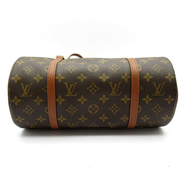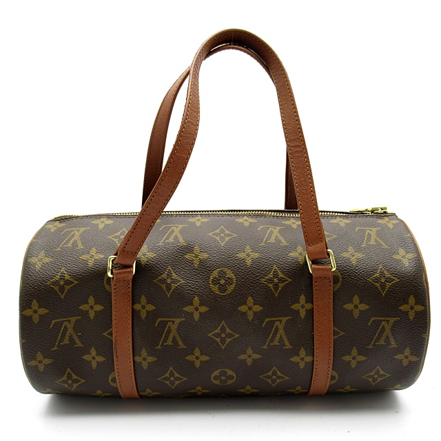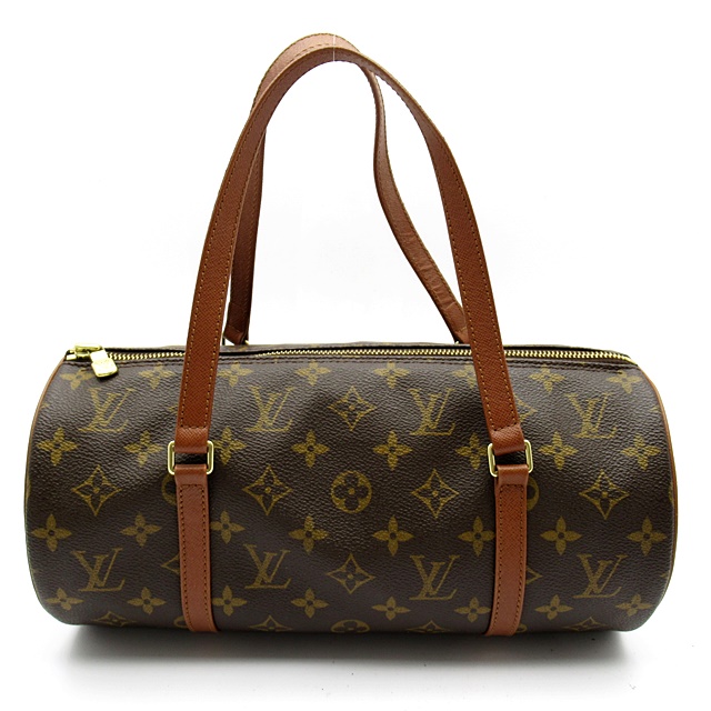 USED品。廃盤品。筒型のコロンとしたフォルムが可愛い人気のパピヨン。ちょうど良いサイズで使いやすいハンドバッグ。人気の旧型茶革タイプです。