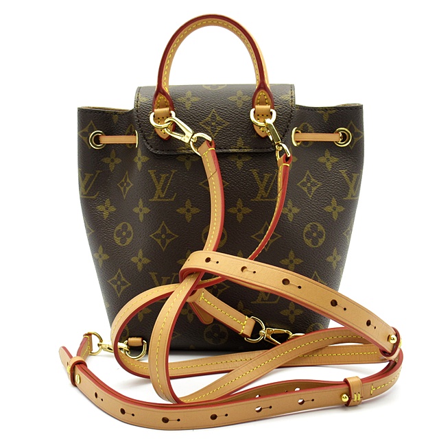 USED品。2020冬コレクションに登場したコンパクトなバックパック「モンスリ NM BB」。クラシカルなモノグラム・キャンバスとカウハイドレザーを使用した一品です。