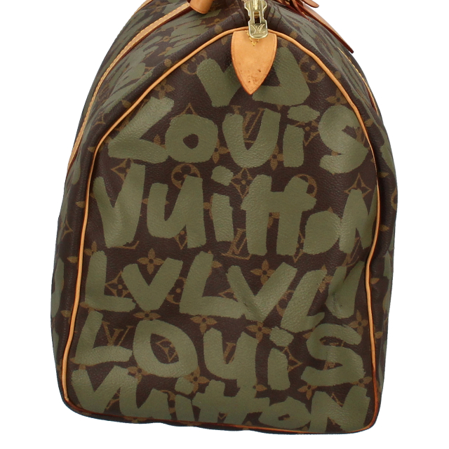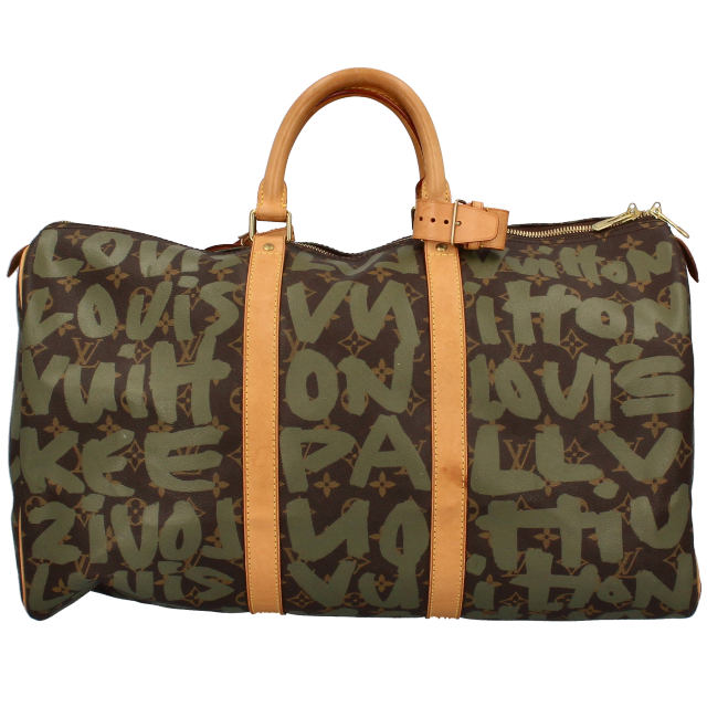 USED品。廃盤品。2000年に発売されたスティーブン・スプラウスとのコラボレートコレクションです。伝統の中にあるブランドのシンボルともいえるモノグラム・キャンバスに落書きをするという、普通の感覚では考えられない斬新なデザインでセンセーショナルを起こした遊び心のある魅力の逸品です。
