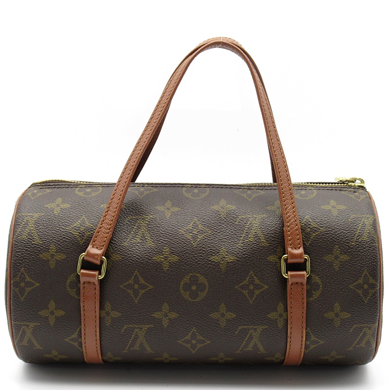 USED品。廃盤品。筒型のコロンとしたフォルムが可愛い人気のパピヨン。ちょうど良いサイズで使いやすいハンドバッグ。人気の旧型茶革タイプです。