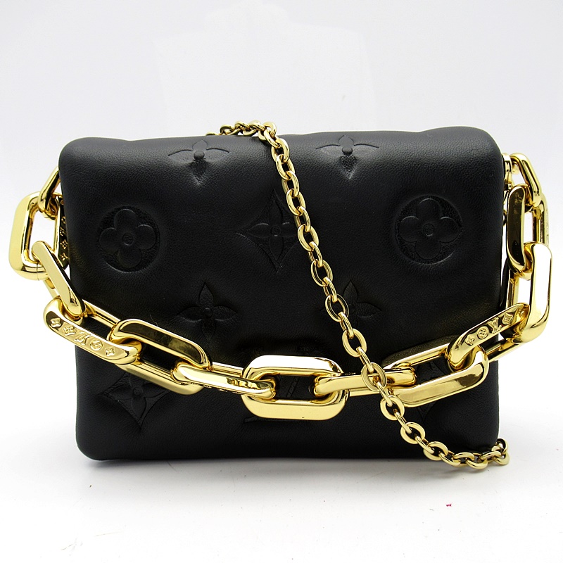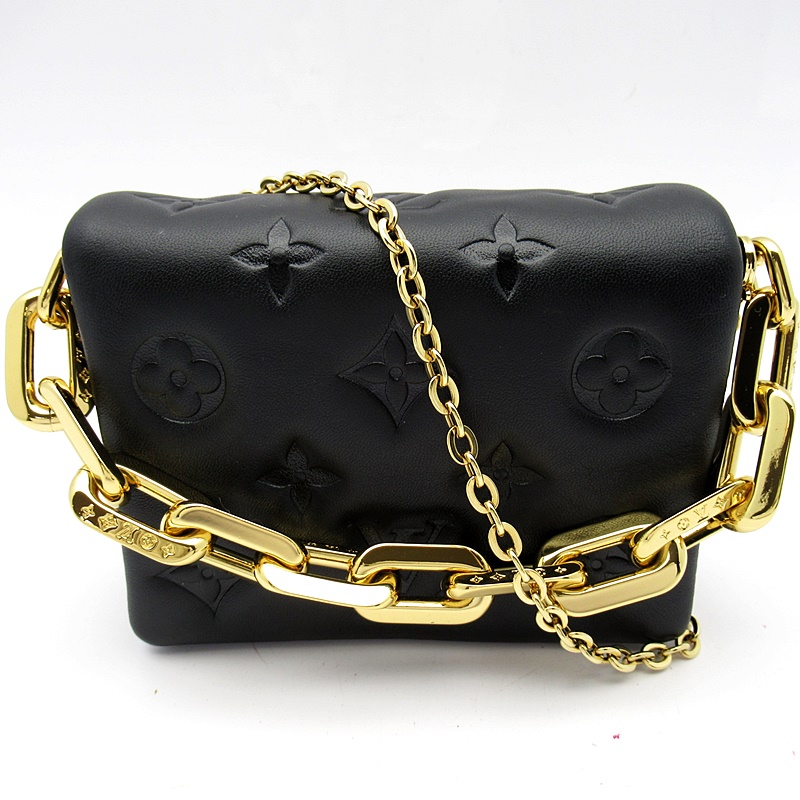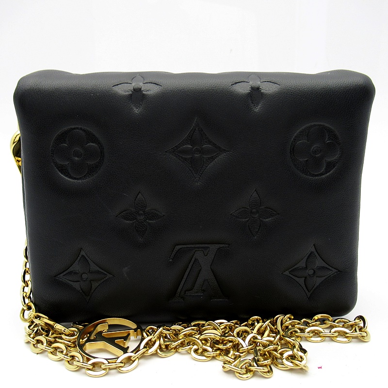 USED品。廃盤品。柔らかなラムレザーを使用し、モノグラム・パターンをエンボス加工で施してふっくらとしたクッションのような風合いに仕上げた「ポシェットクッサン」。独特の構造が、しなやかでボディフレンドリーなスタイルを際立たせます。LV サークルのチャームを添えた取外し可能なチェーンで、ショルダーバッグ、ベルトバッグなどさまざまな持ち方をお楽しみいただけるのも魅力です。