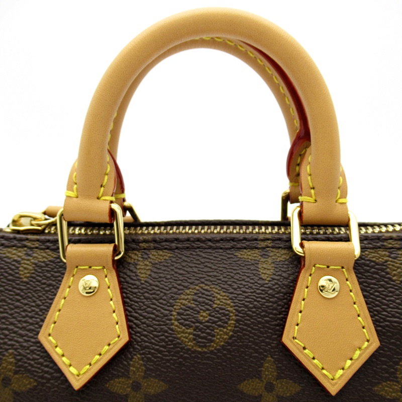 USED品。しなやかなモノグラム・キャンバスを使用してカジュアルなコンパクトサイズに仕上げた「ナノスピーディ」。都会の日常生活に最適なアイテムです。